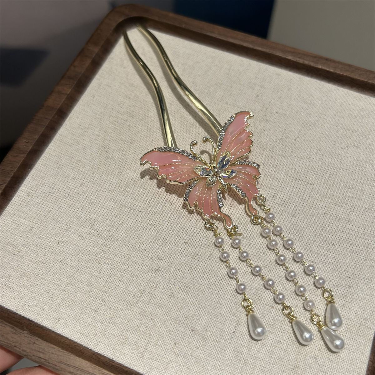 超仙蝴蝶流苏U型发簪女高级感盘发簪子步摇古风发钗汉服旗袍头饰