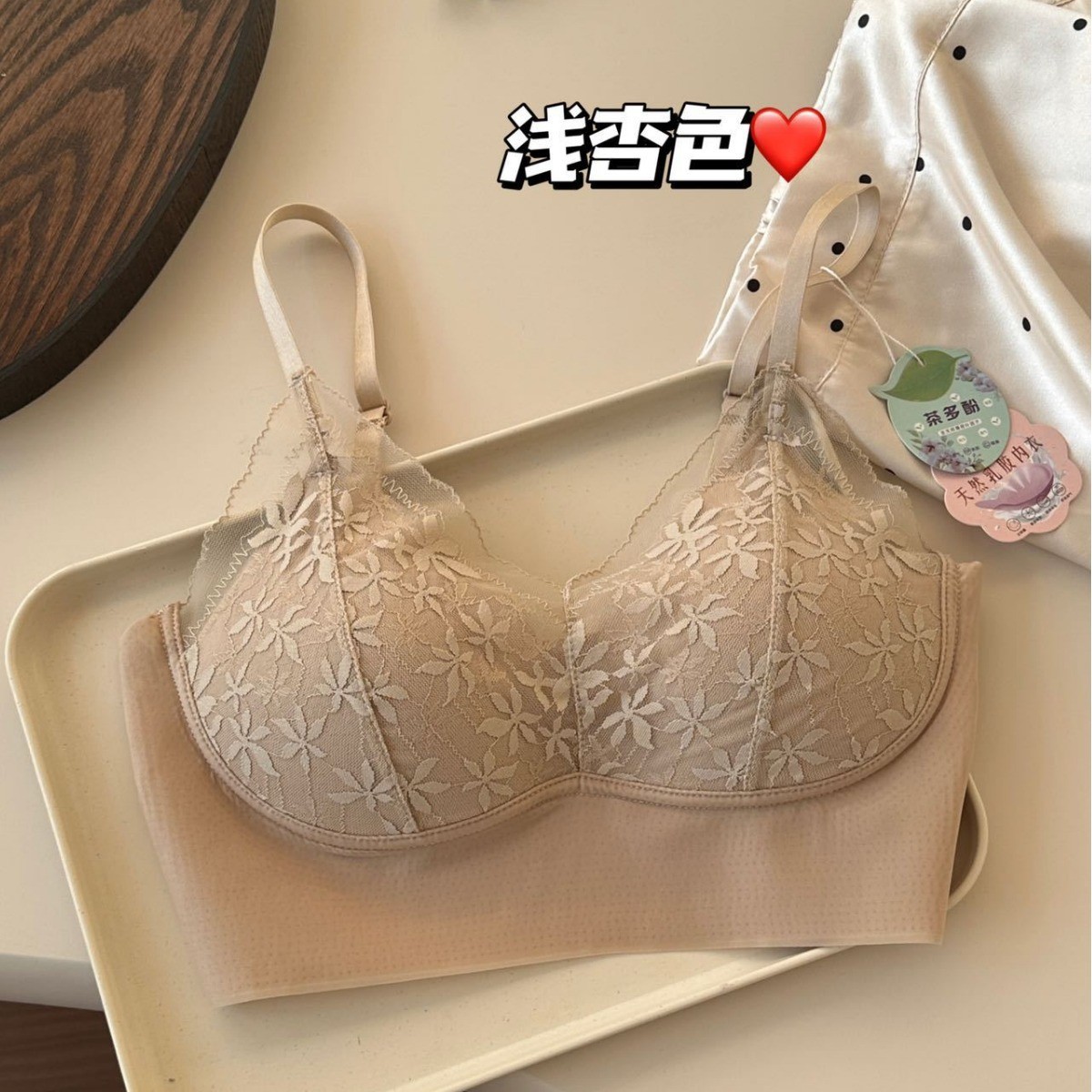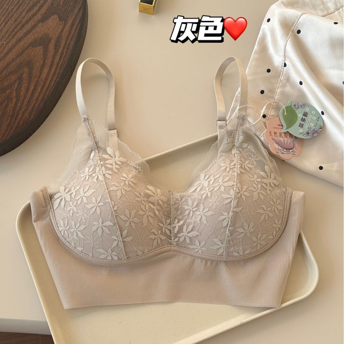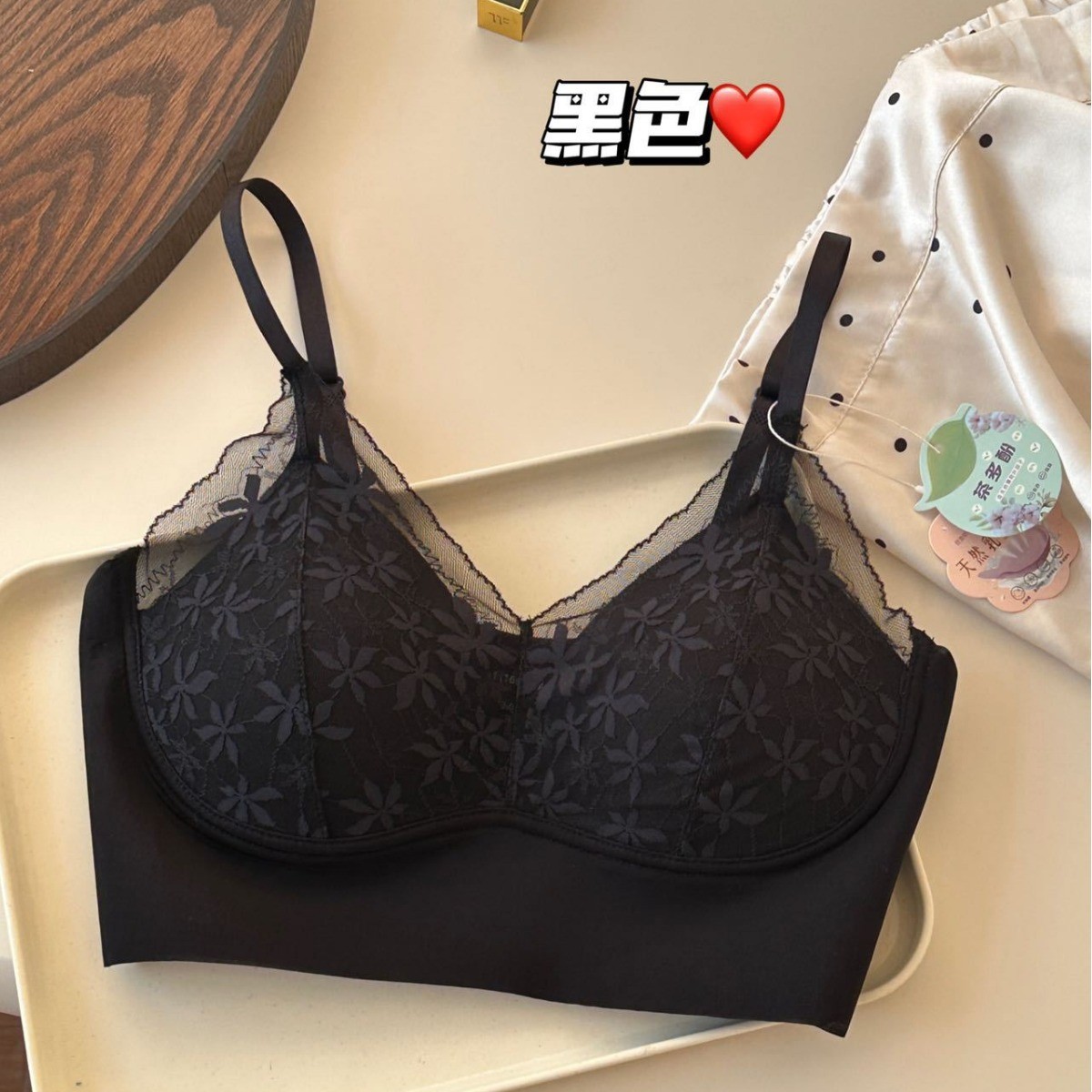 法式蕾丝无痕美背超薄冰丝固定一体乳胶杯无钢圈文胸内衣女