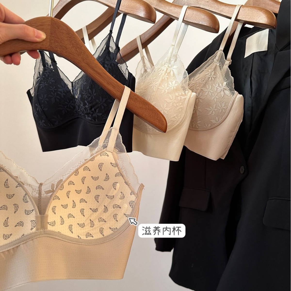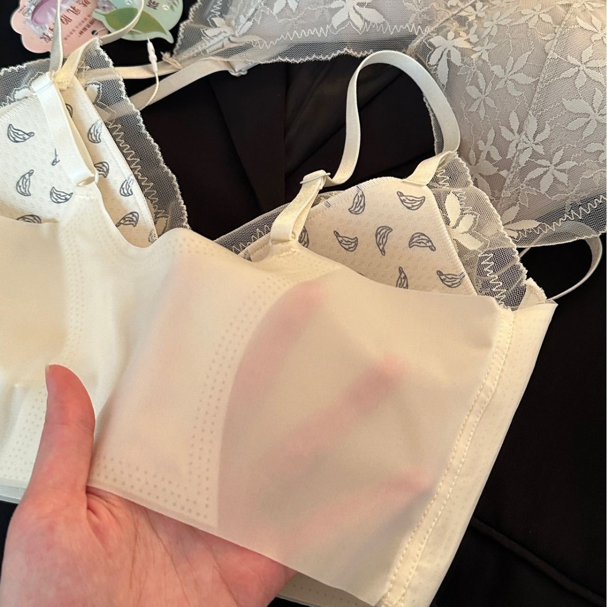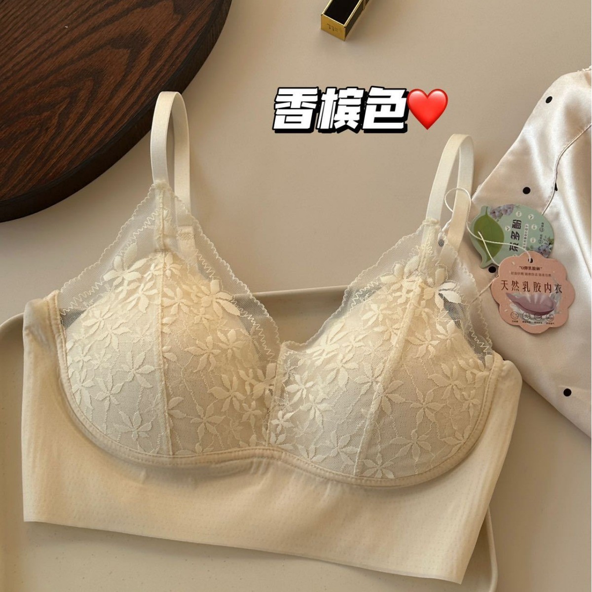 法式蕾丝无痕美背超薄冰丝固定一体乳胶杯无钢圈文胸内衣女