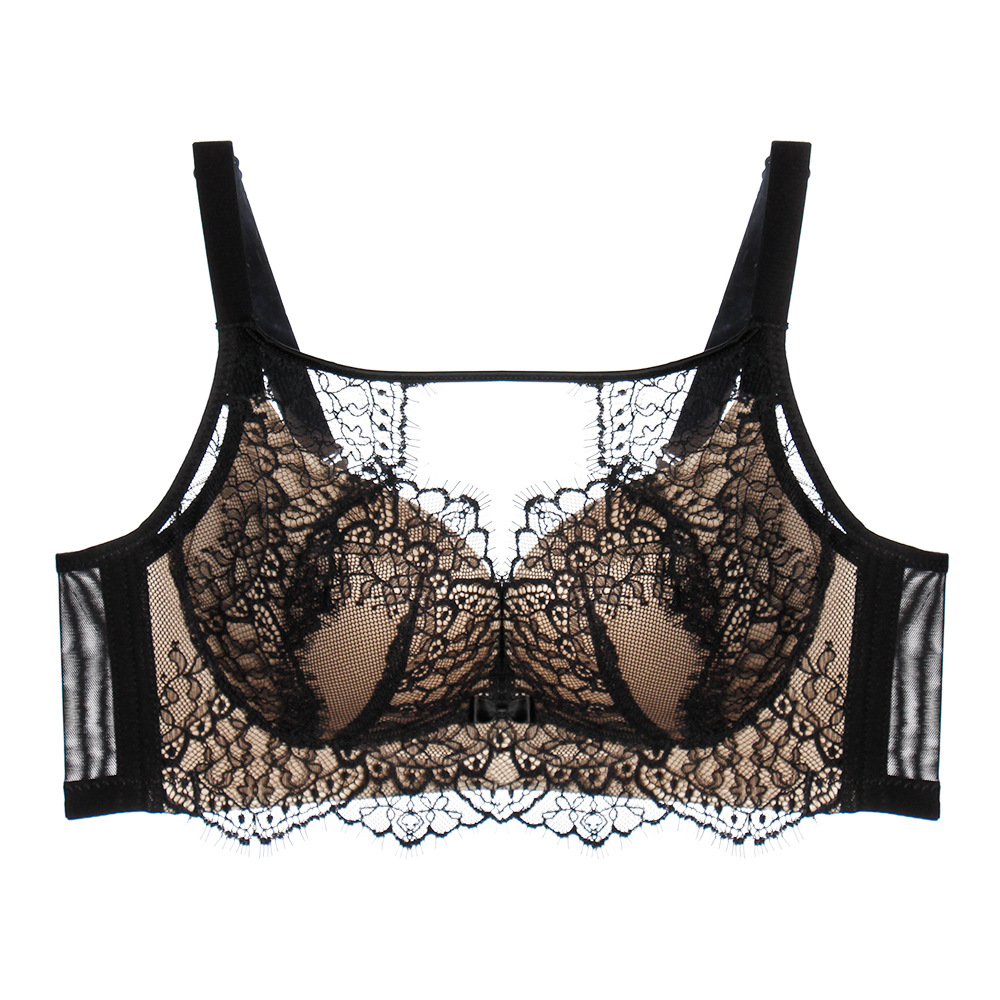 法式无钢圈性感文胸罩透气胸前睫毛带时尚聚拢调整型撞色蕾丝内衣