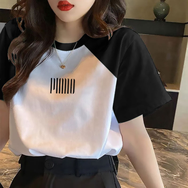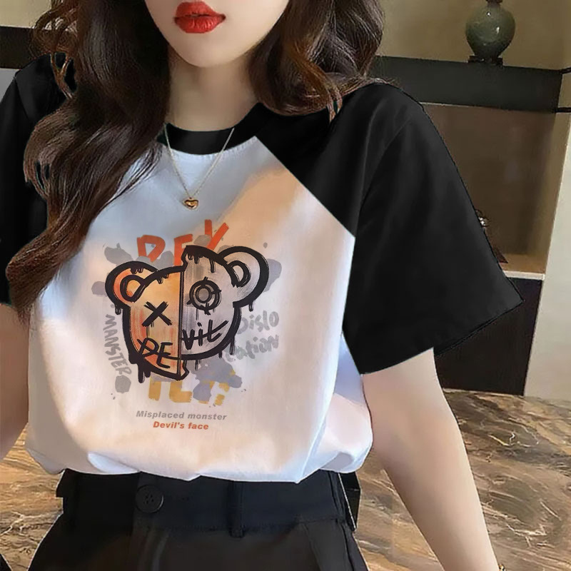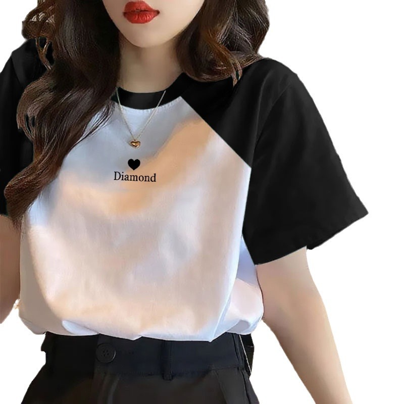纯棉短袖插肩T恤女夏季新款宽松显瘦拼接撞色半袖上衣