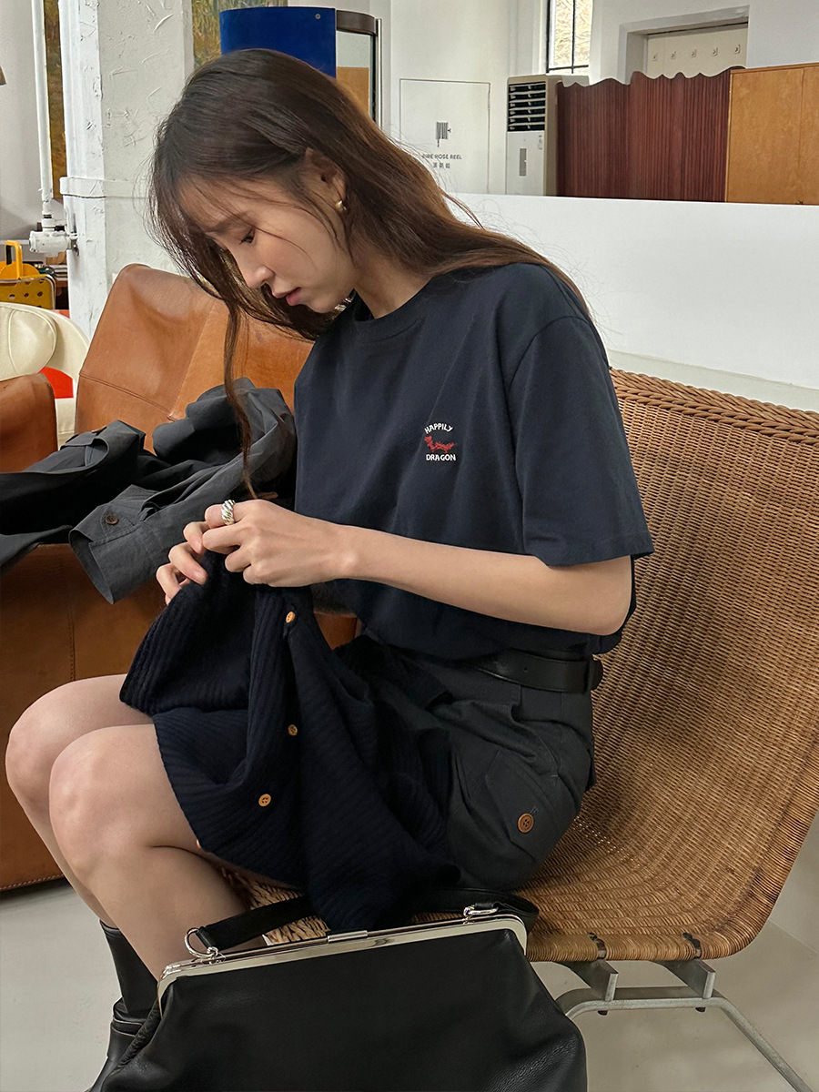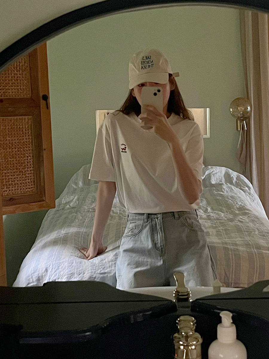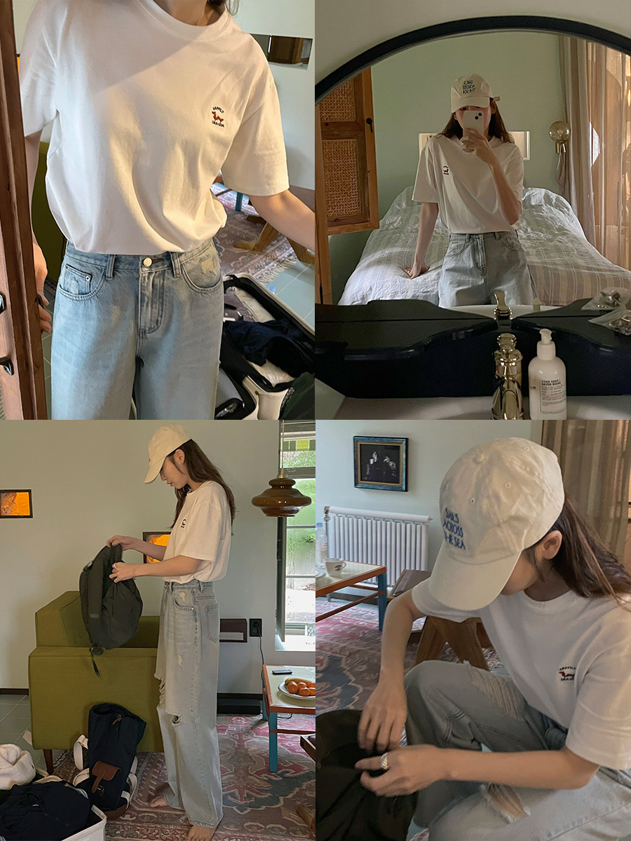 时简 字母绣花短袖T恤女春夏新款亲肤舒适撞色宽松上衣
