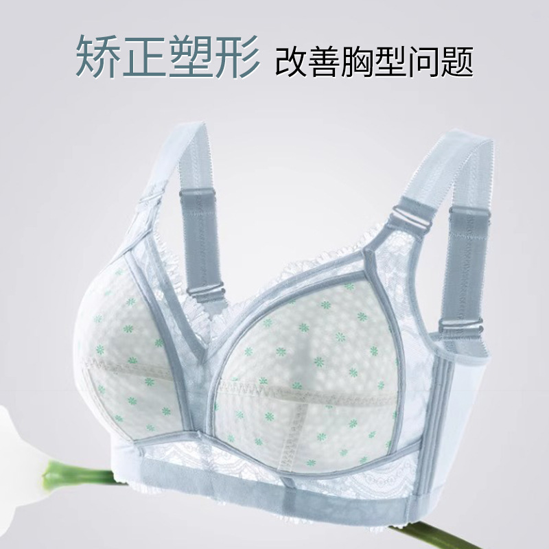 大显小内衣女调整型矫正塑型收副乳胸罩无钢圈蕾丝三明治棉杯文胸