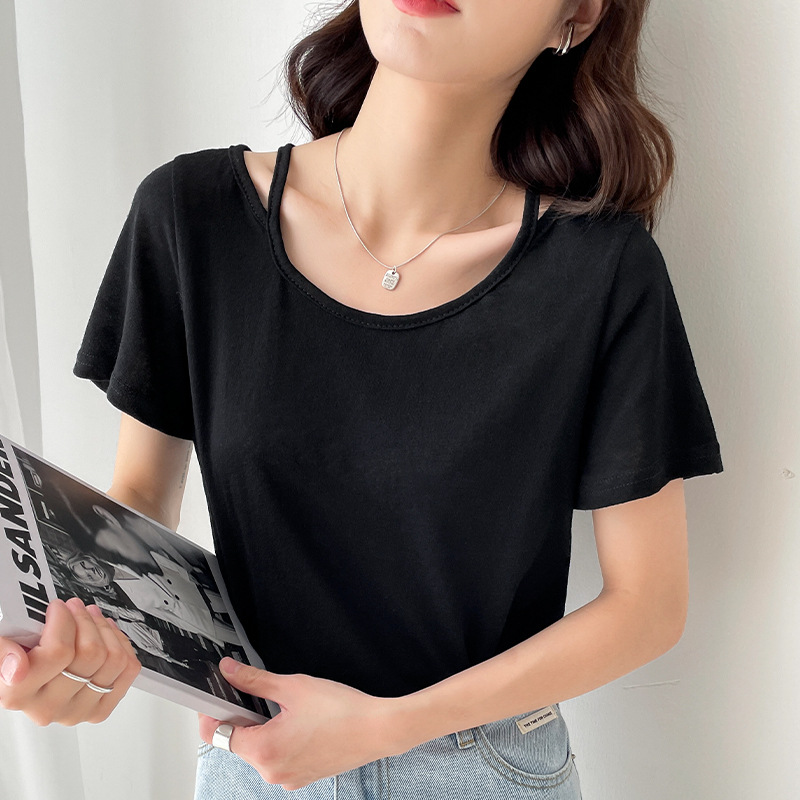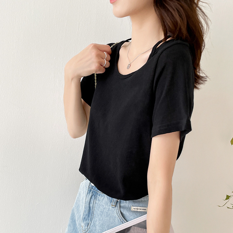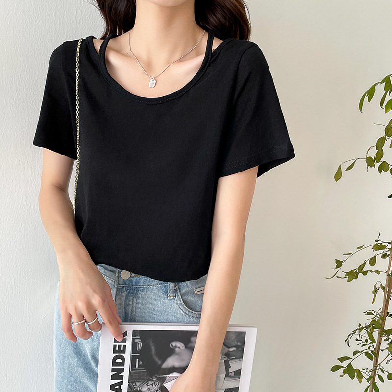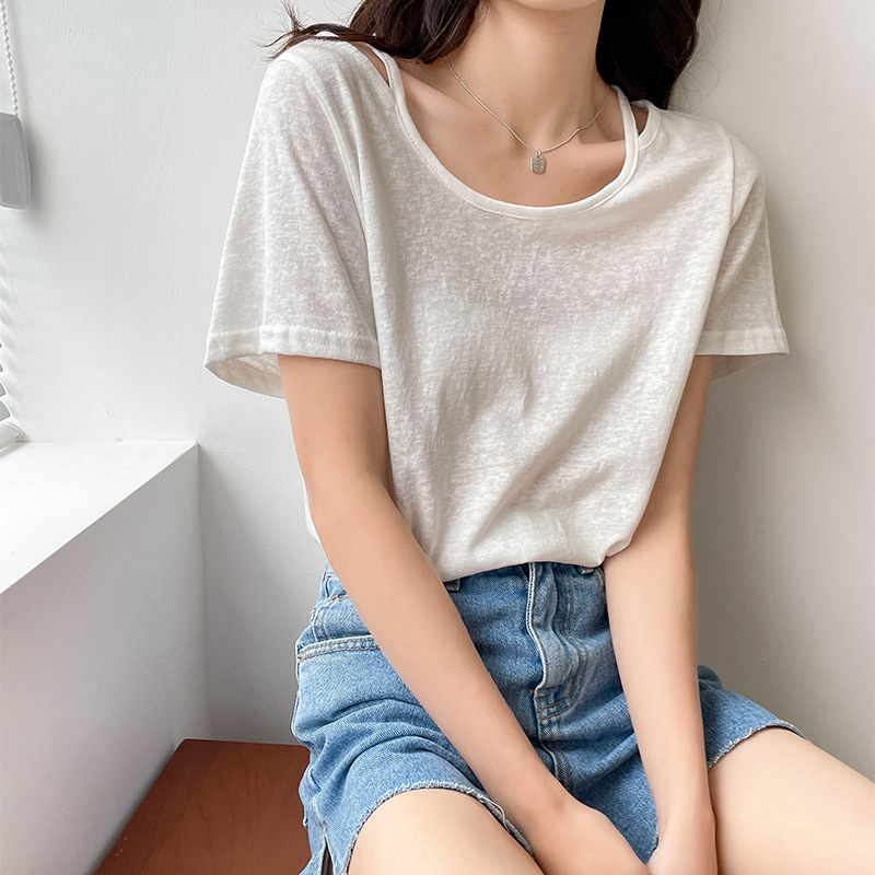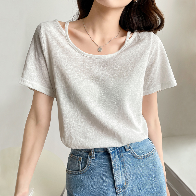 雪花棉麻上衣女夏季新款设计感小众薄款白色短袖t恤女宽松