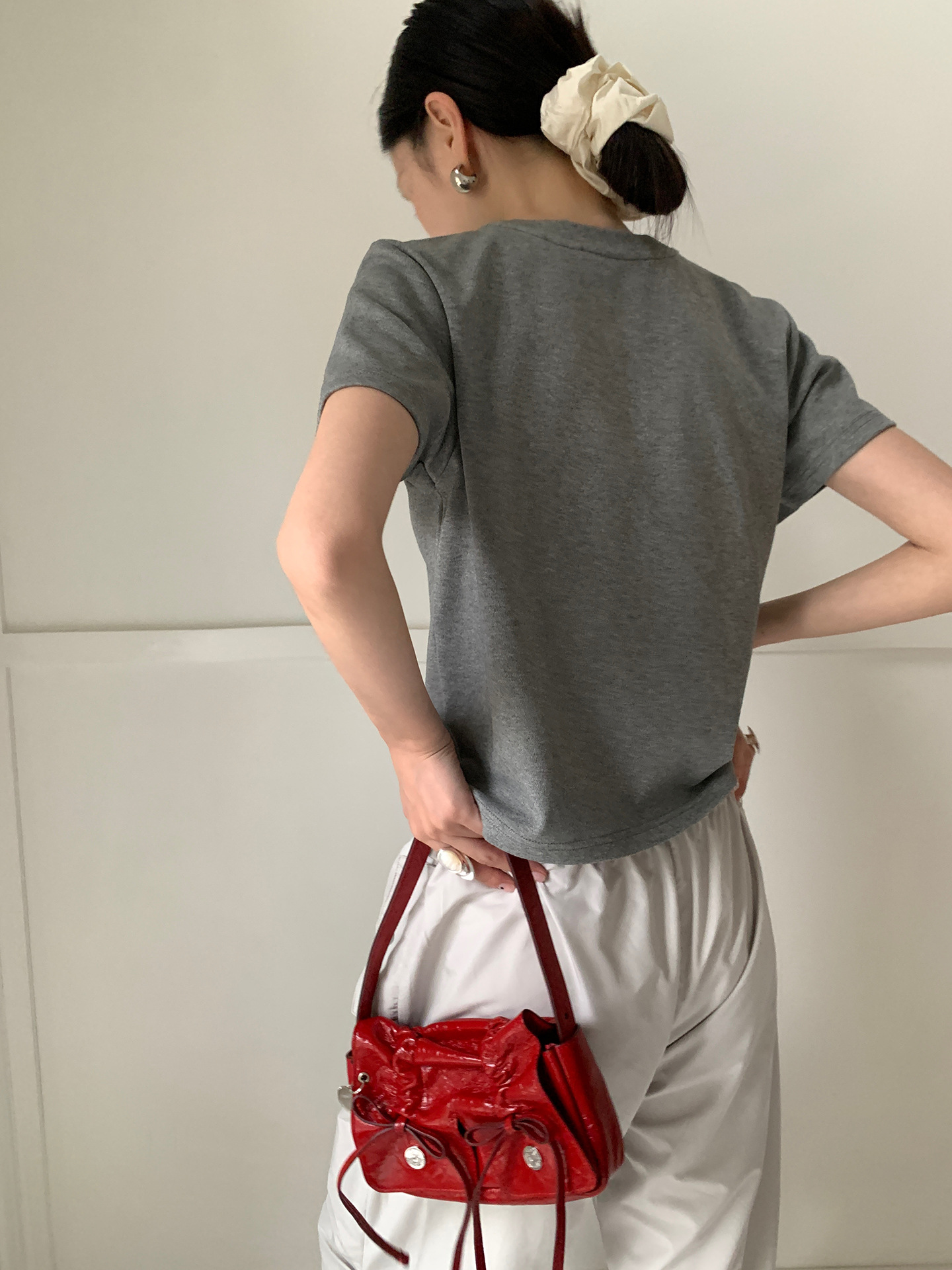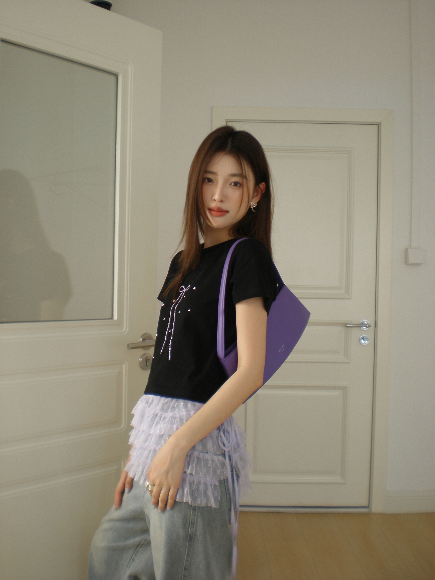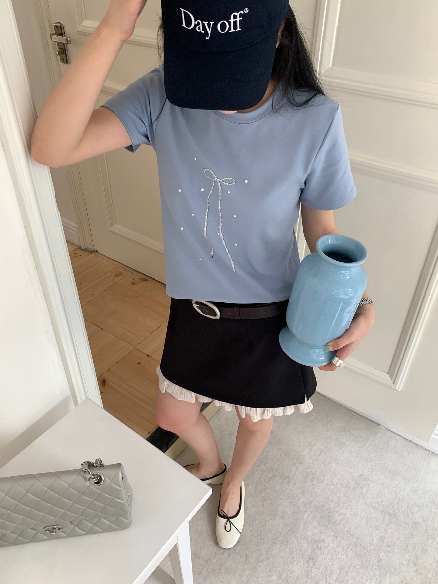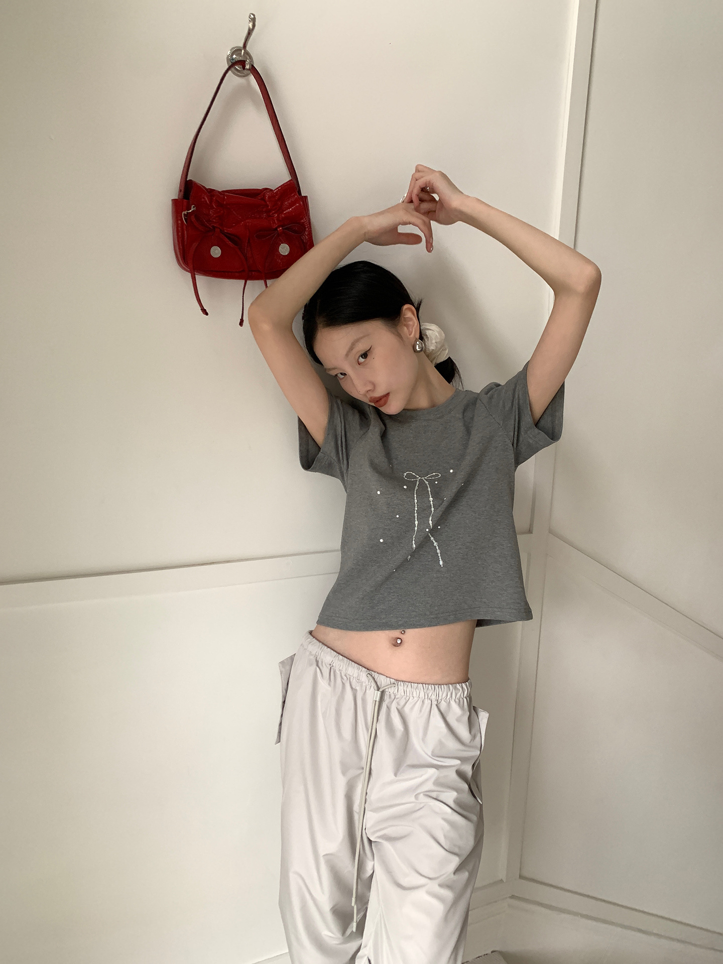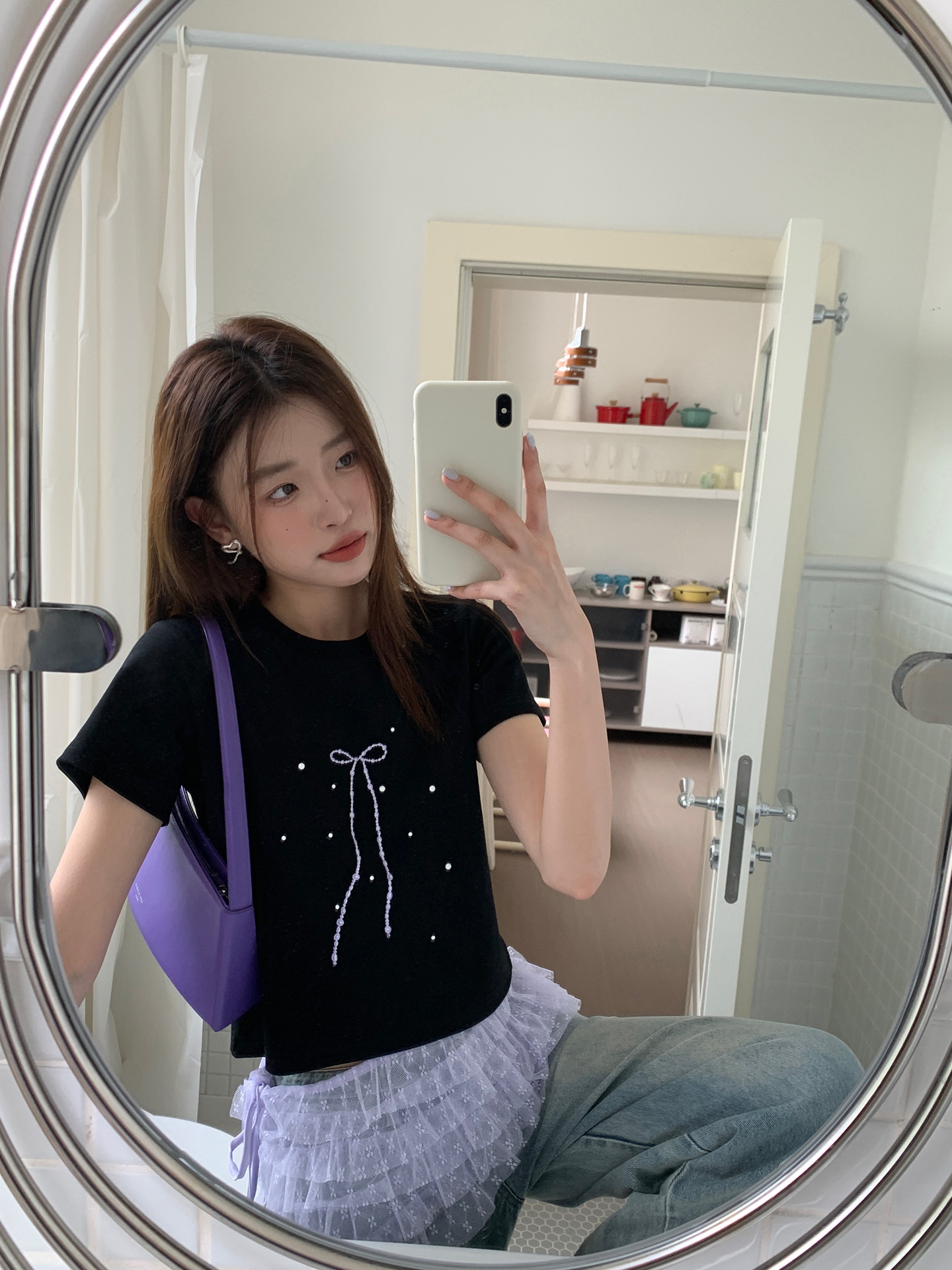 趋梦DT ETOLIE烫钻印花蝴蝶结T恤圆领正肩短袖女夏季新款上衣