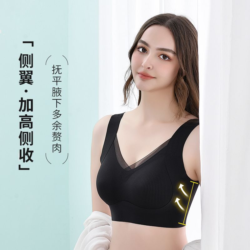 排扣款无痕暖肌反重力提拉网纱内衣女聚拢调整型舒适无钢圈文胸