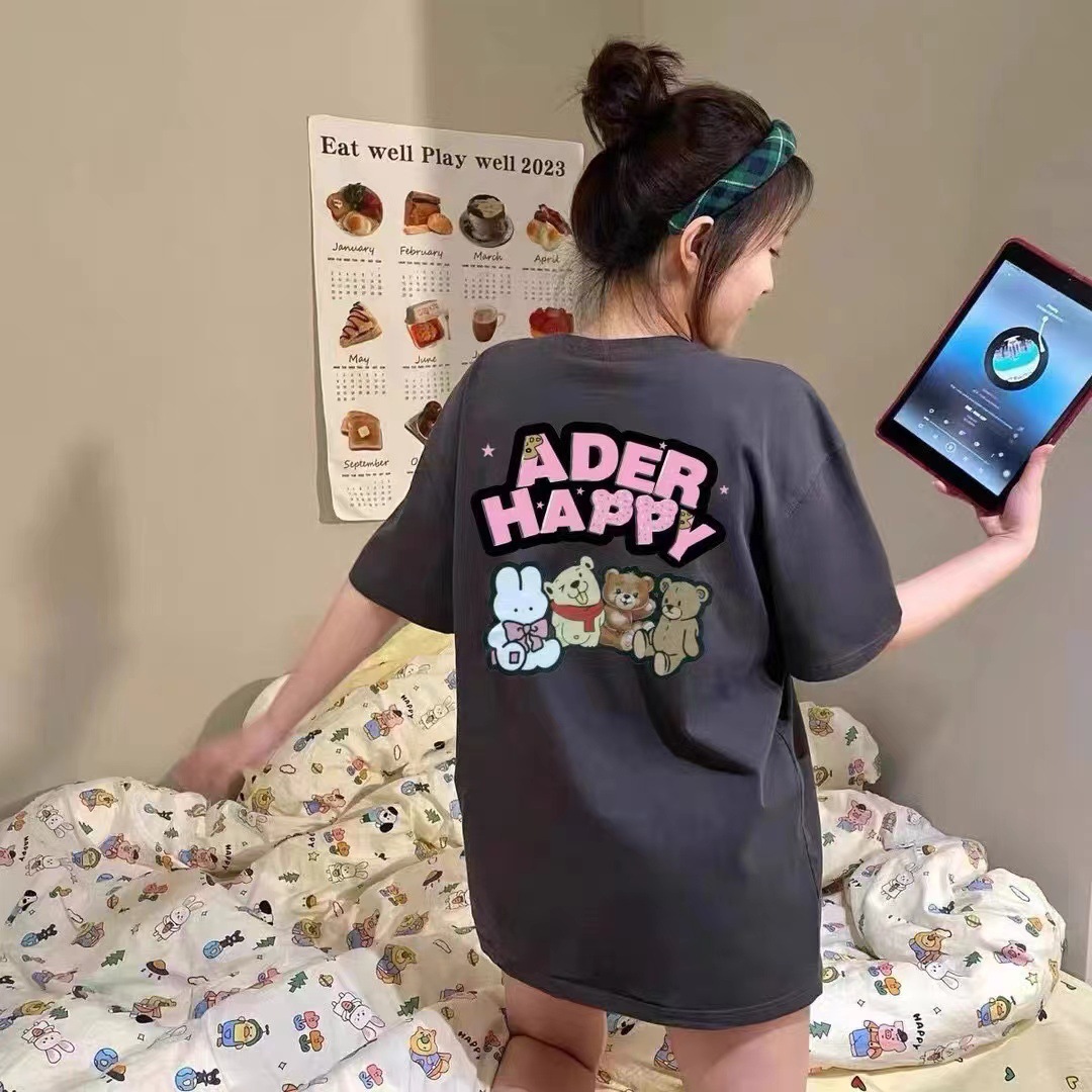 24夏季新款ader卡通小熊T恤女减龄甜美短袖韩系百搭休闲情侣上衣