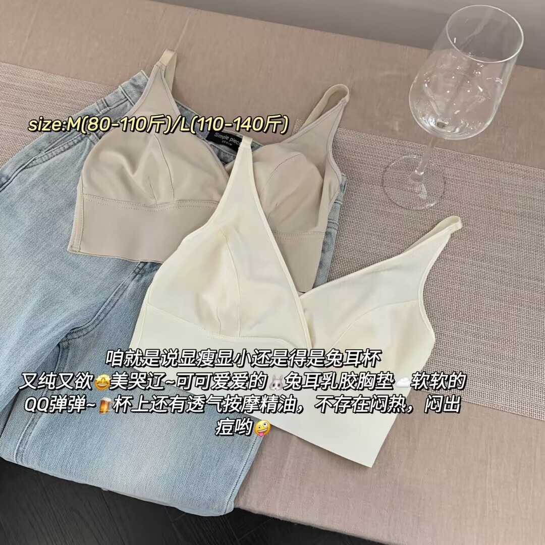 兔耳朵杯无痕无钢圈固定杯美背文胸大胸显小轻薄透气防下垂内衣女