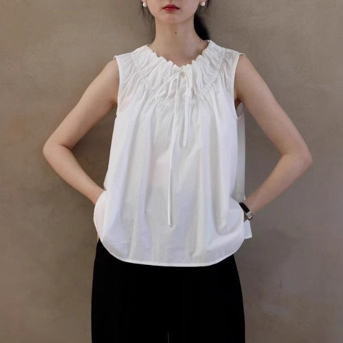 小众法式气质甜美上衣短款无袖小衫温柔百搭衬衣春色白色