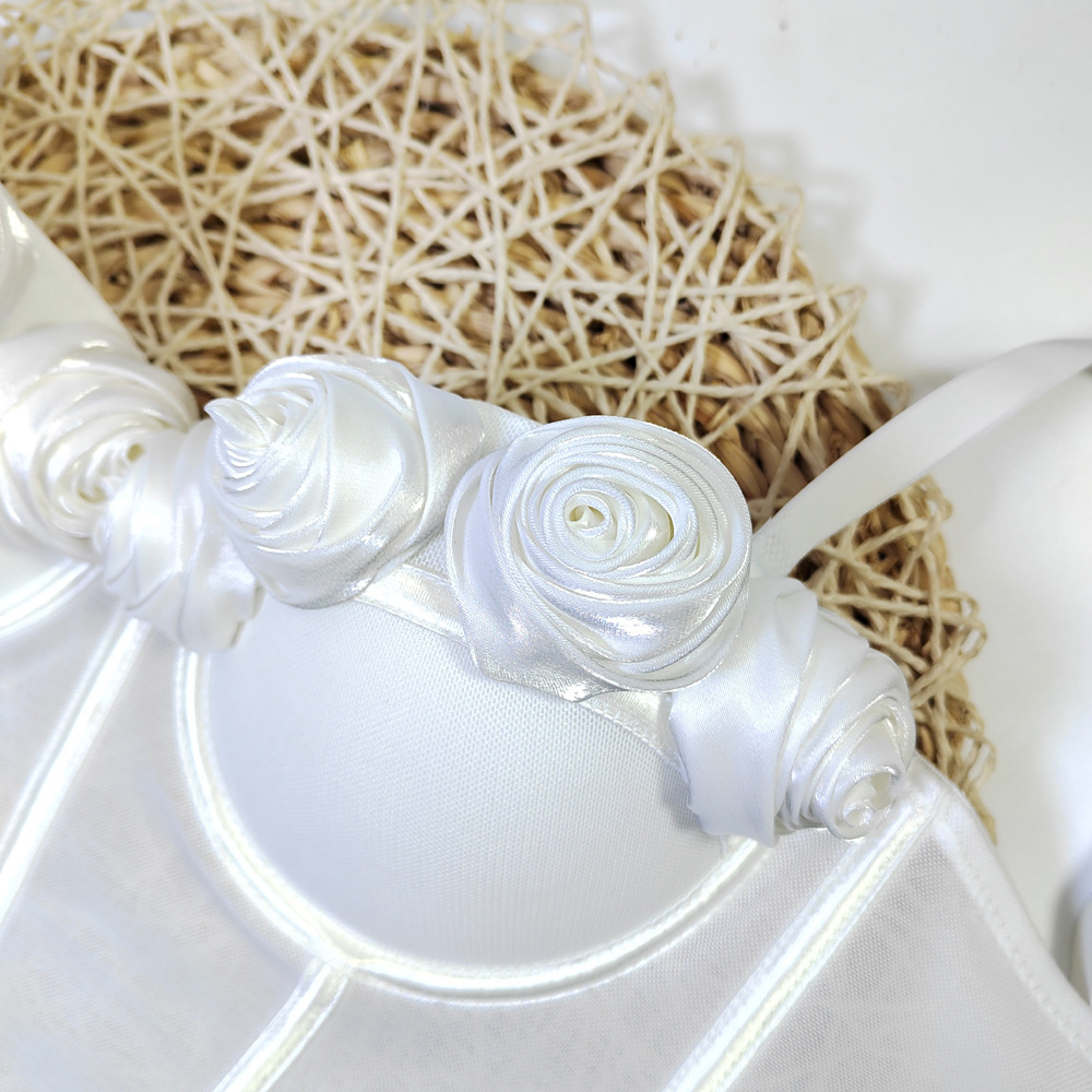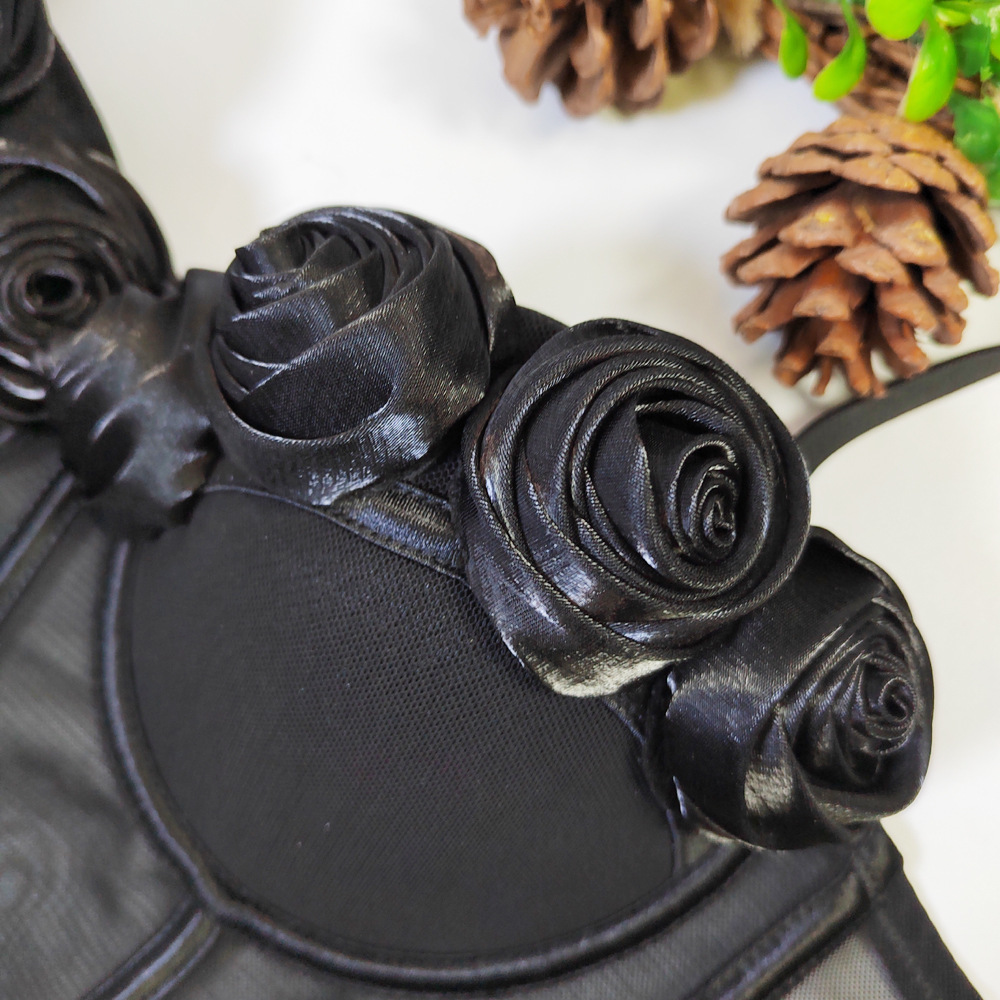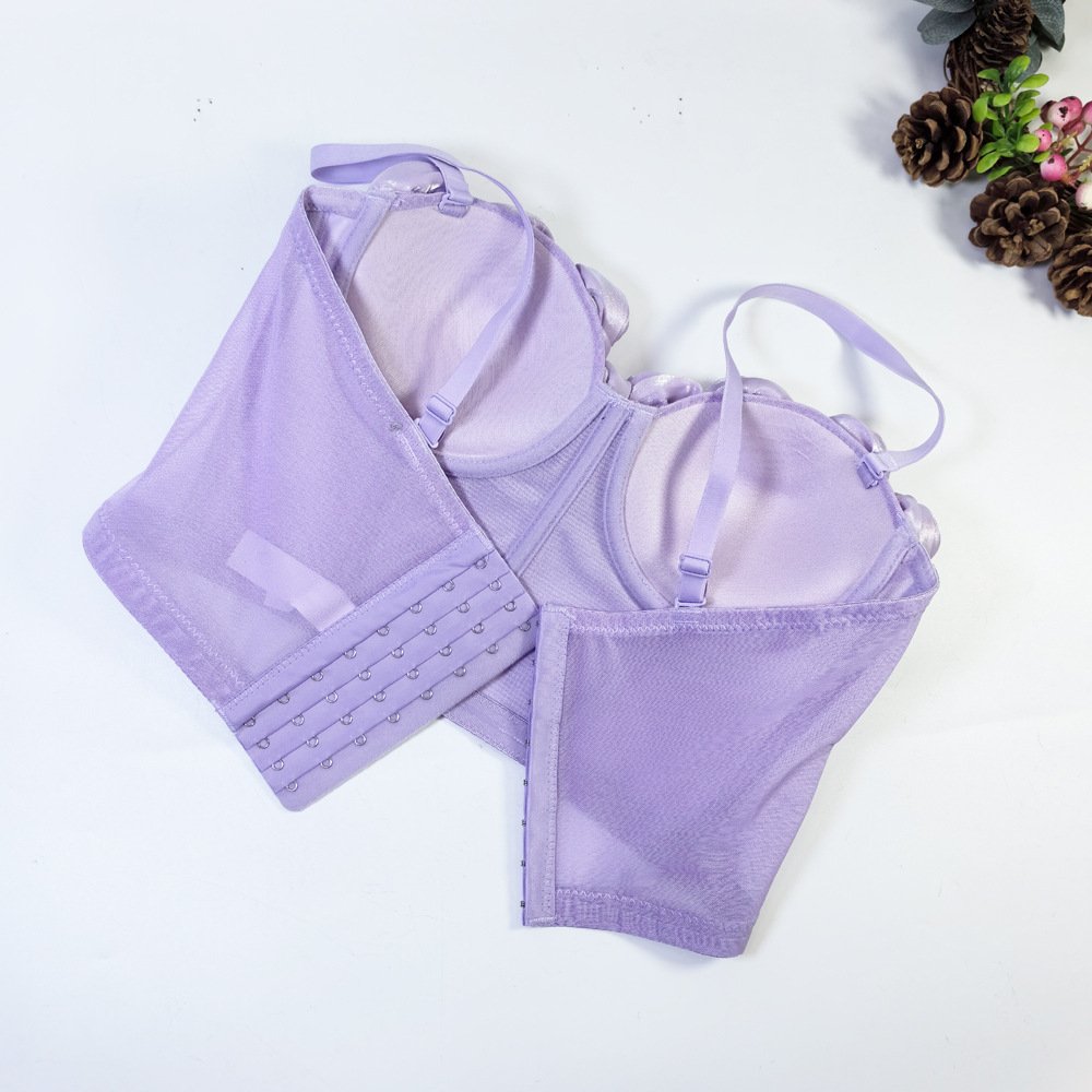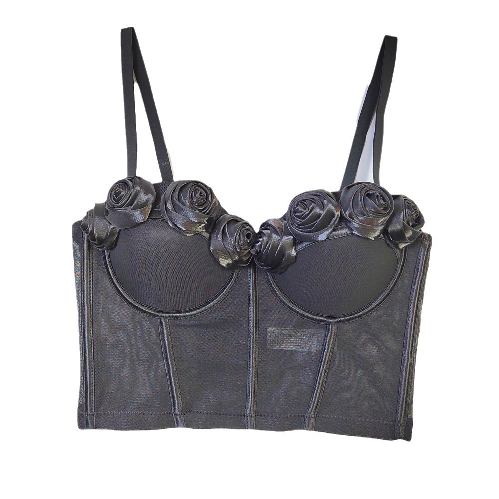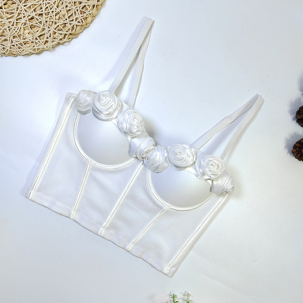 法式设计感手工玫瑰花朵抹胸外穿网纱美背内衣一体固定杯鱼骨吊带