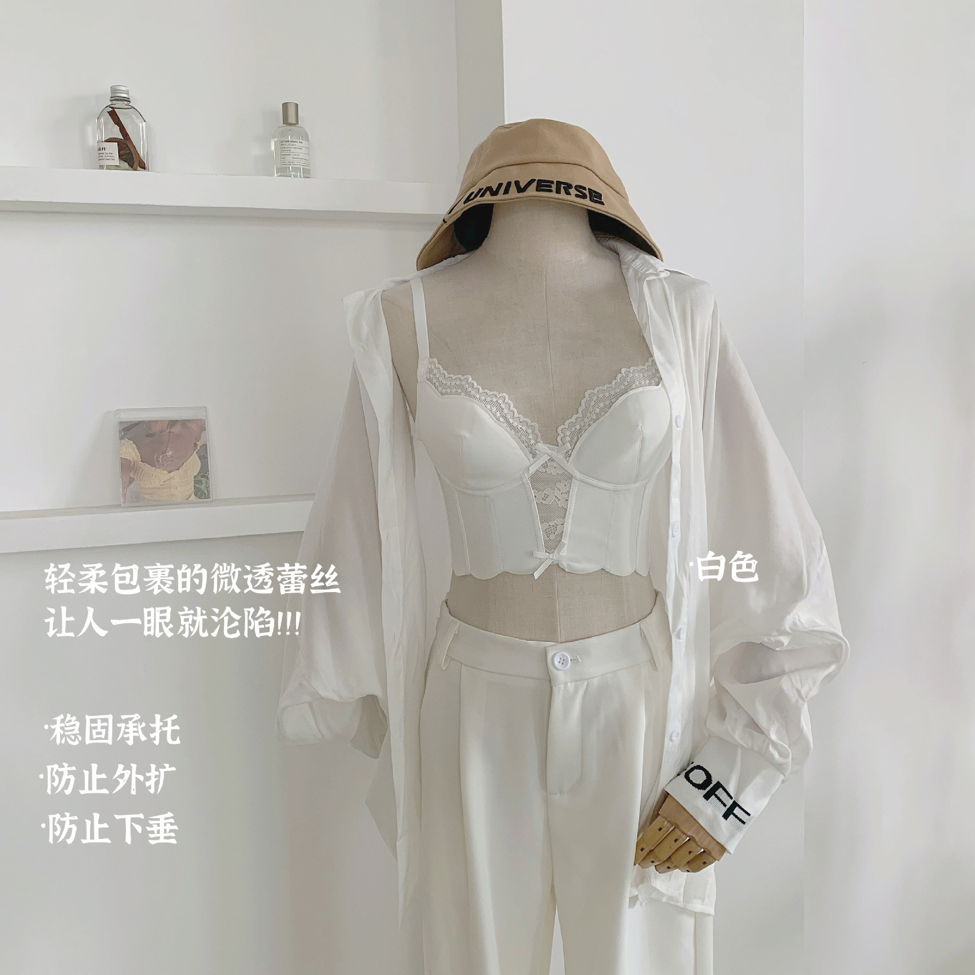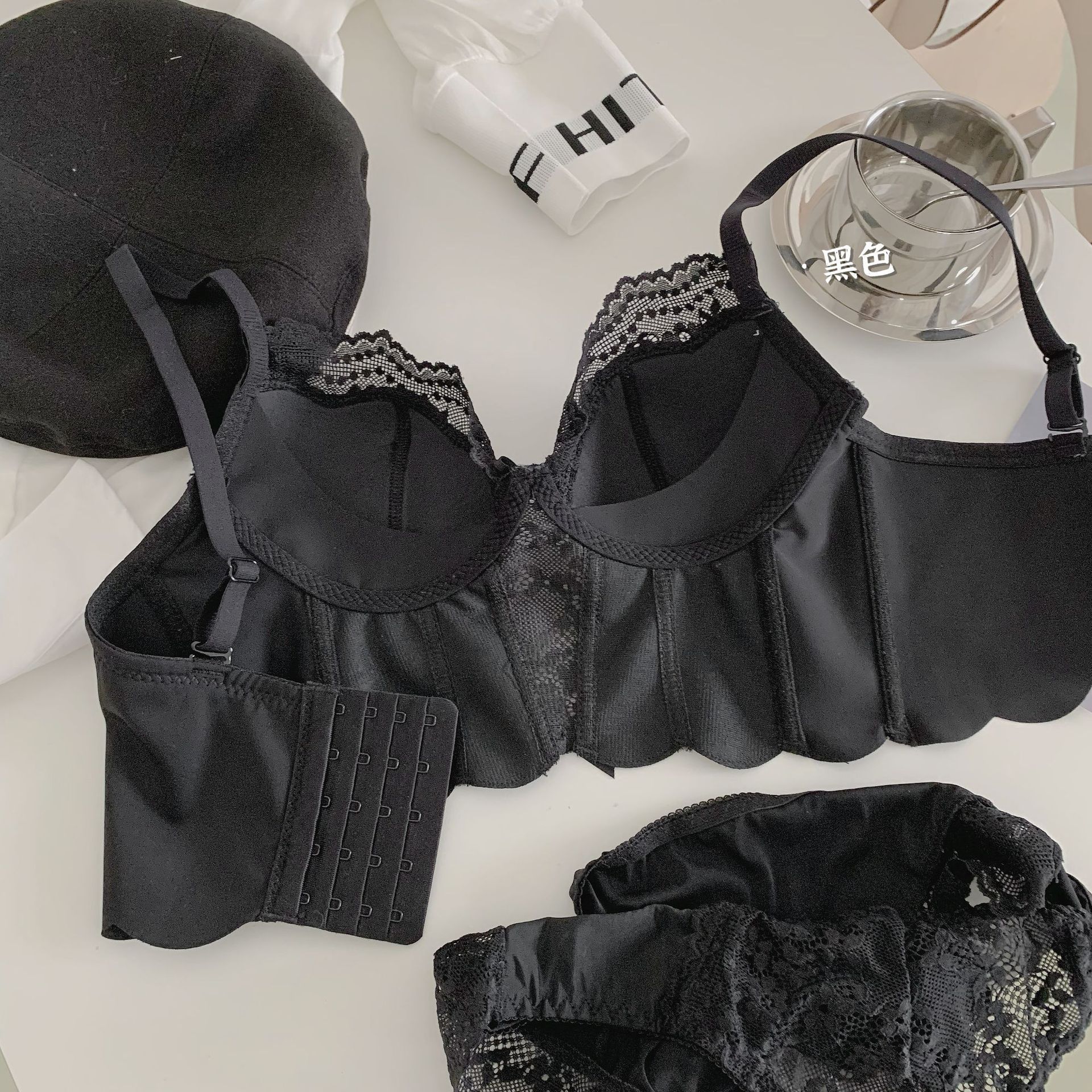 法式薄款内衣女大胸显小胸聚拢无钢圈性感蕾丝收副乳鱼骨文胸套装