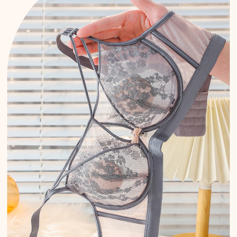 聚拢性感法式蕾丝兔耳朵杯纯欲内衣女大胸显小防下垂超薄文胸罩
