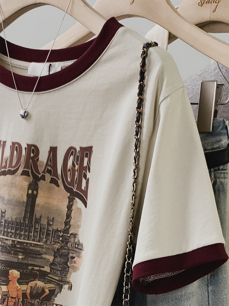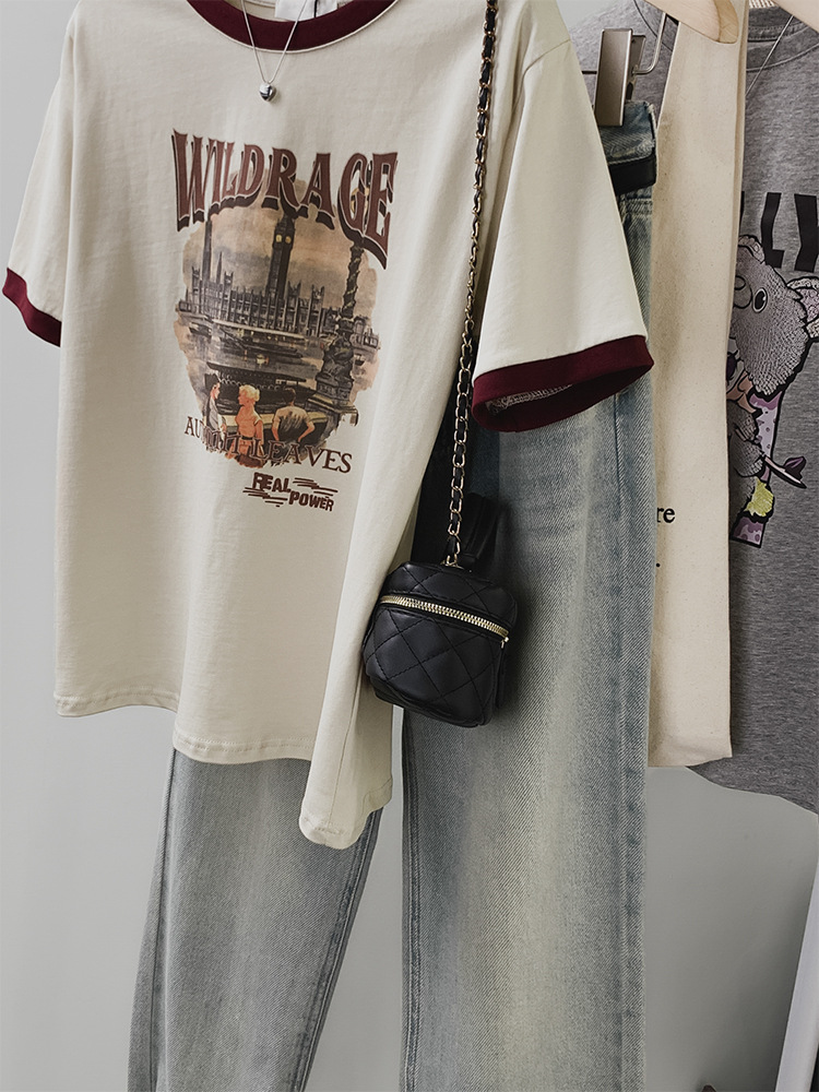 杏色【新款/爆款/印花/高端大牌/显瘦/韩版/气质/欧货/女生/休闲/重磅/纯棉/外贸/欧洲站/夏