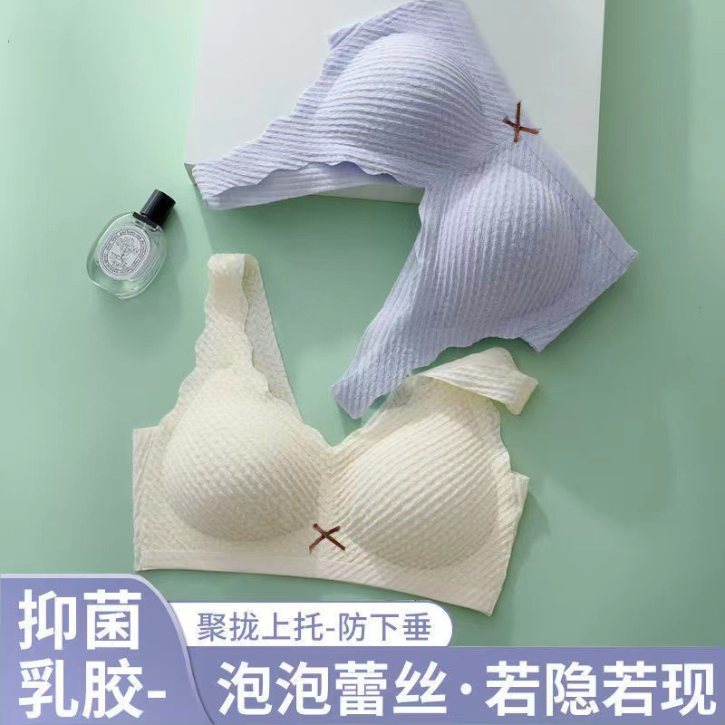 无痕蕾丝一片式泡泡内衣女士透气背心无钢圈聚拢性感舒适运动文胸