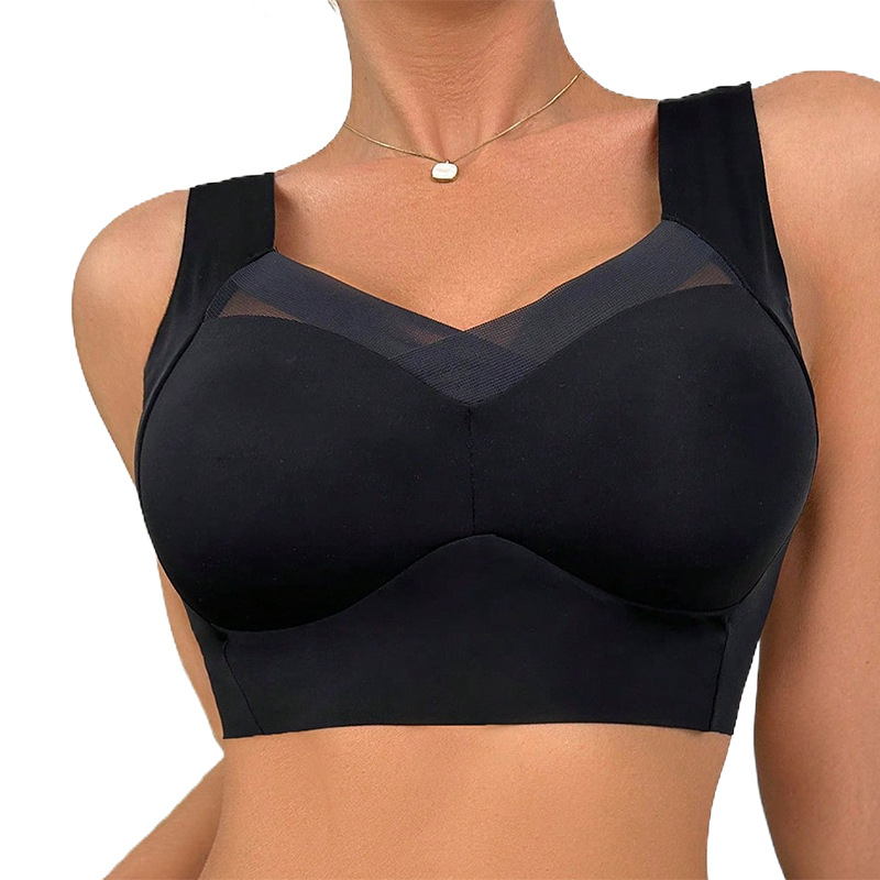 跨境无痕所属无钢圈文胸大胸显小聚拢调整型收副乳一体式美背内衣