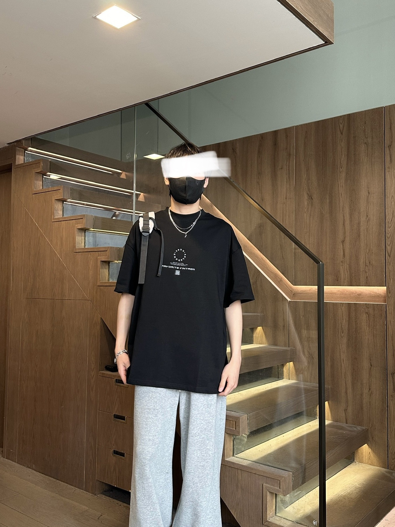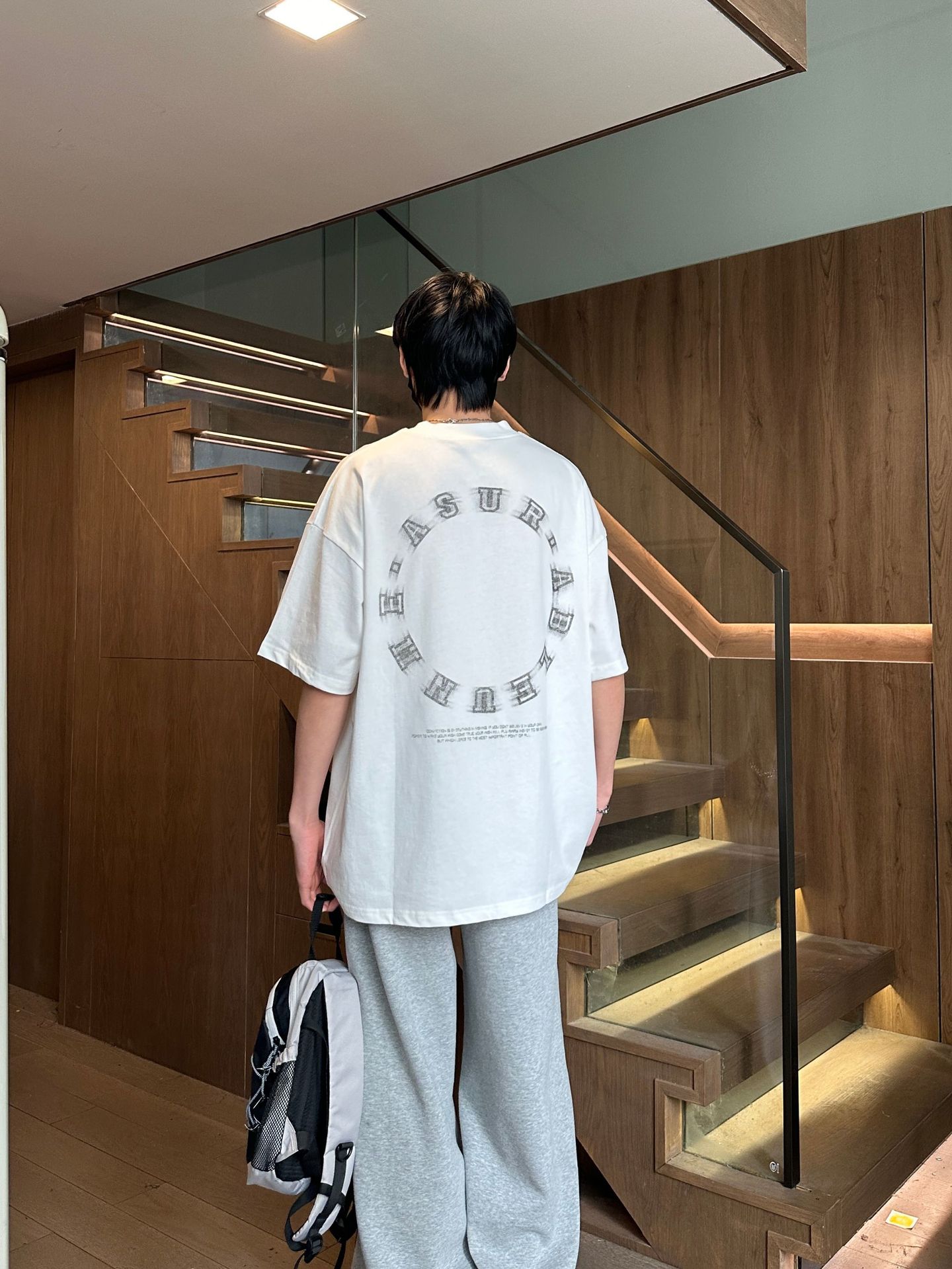夏季新款简约宽松短袖基础百搭环形字母印花圆领休闲T恤男女