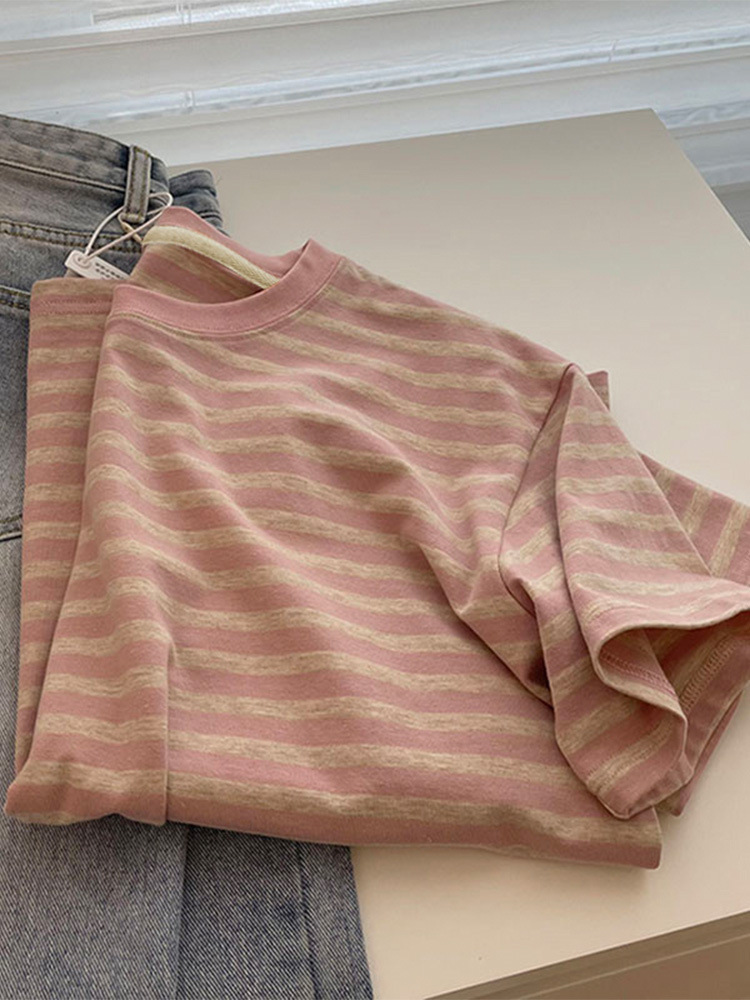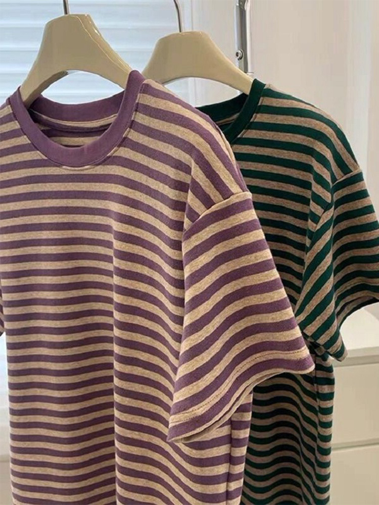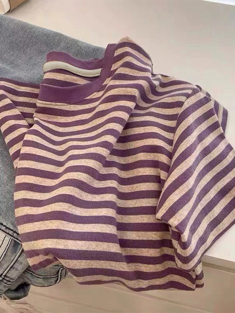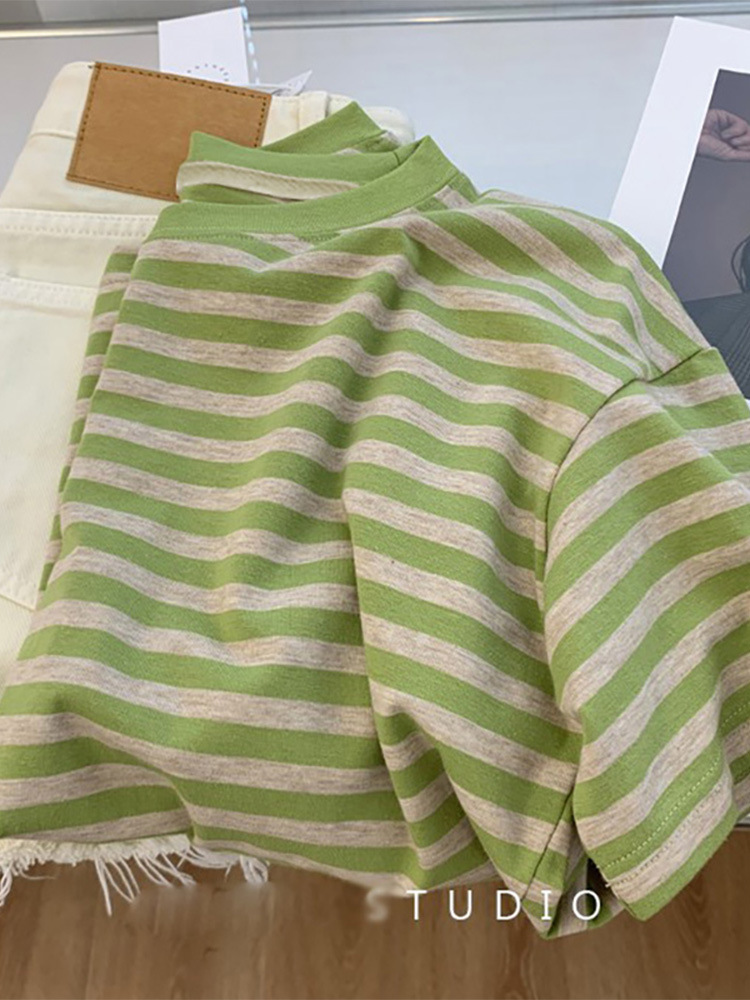 条纹短袖女夏季新款宽松正肩T恤独特设计感小众体桖半袖上衣ins潮