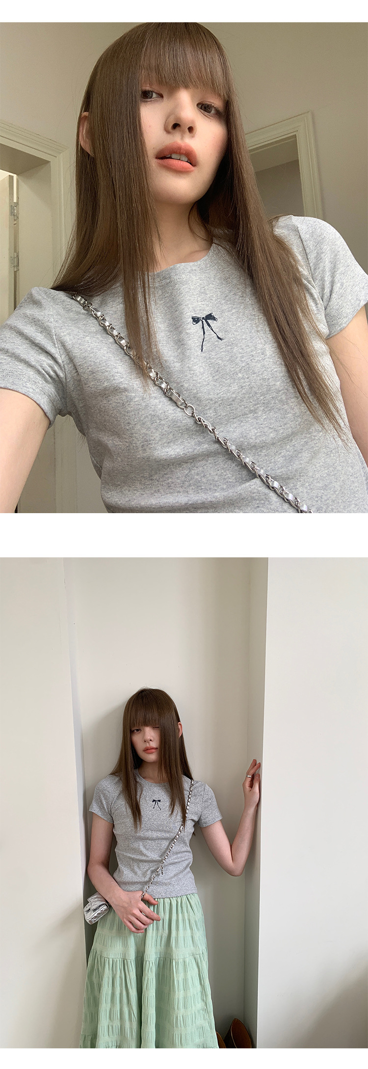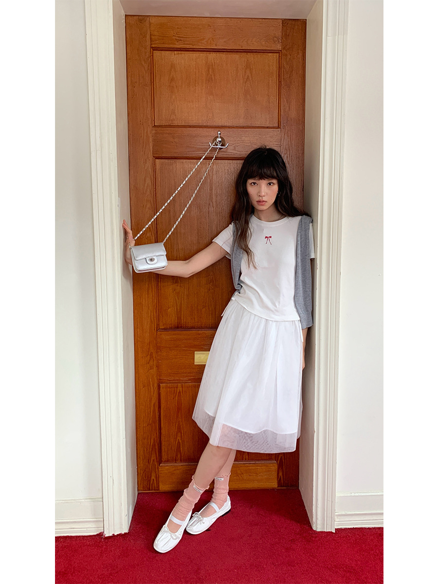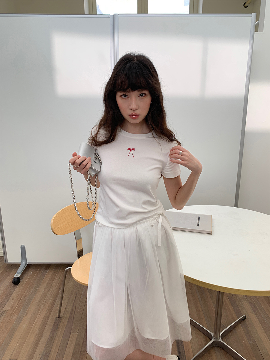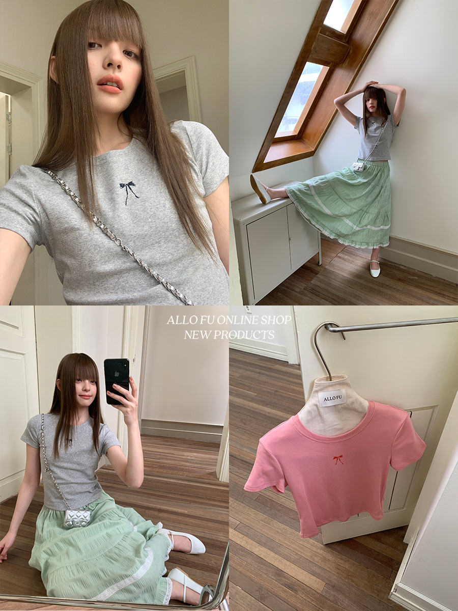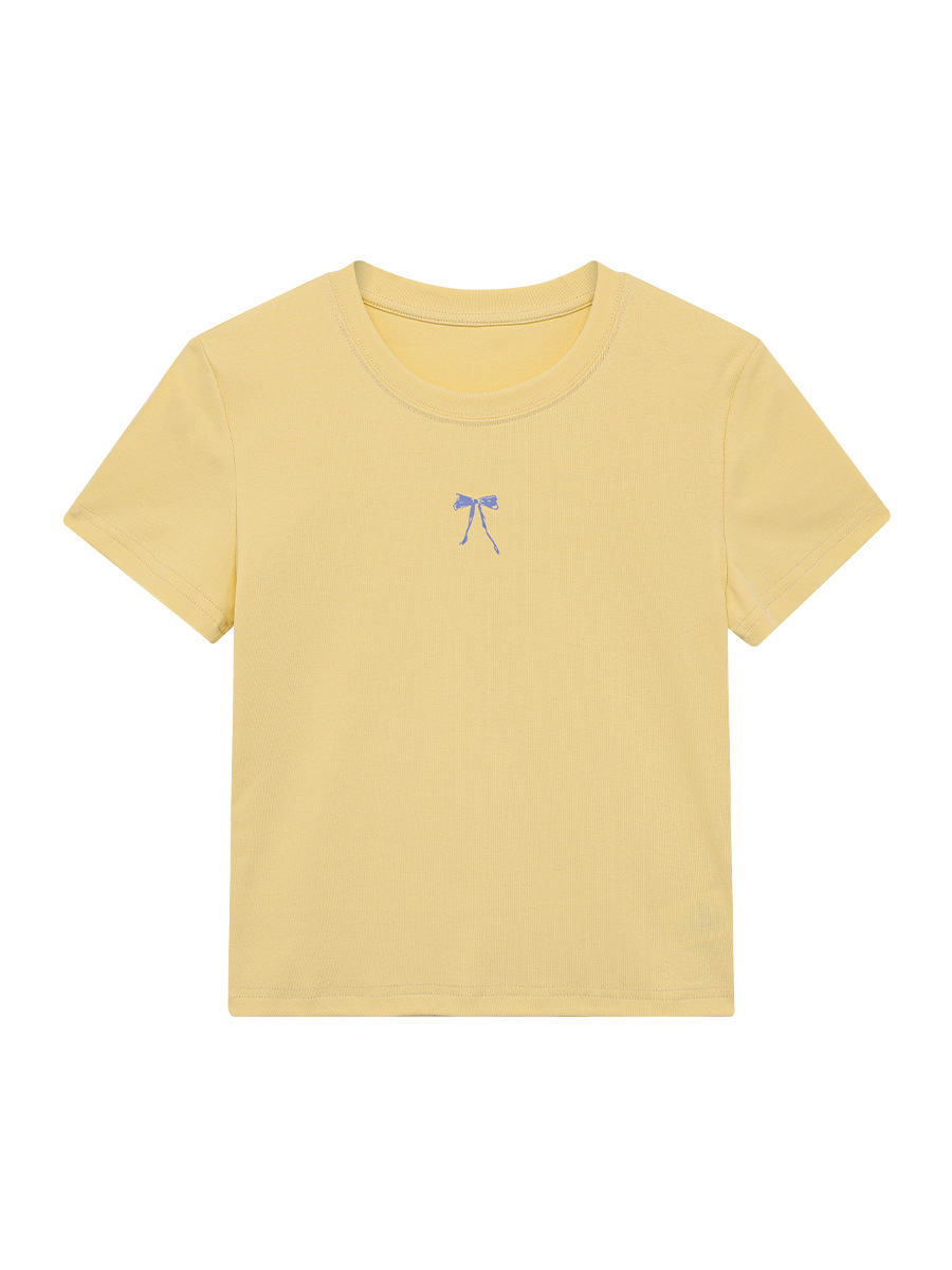 衣夫 蝴蝶结印花T恤女夏季新款正肩显瘦圆领休闲短袖上衣3208