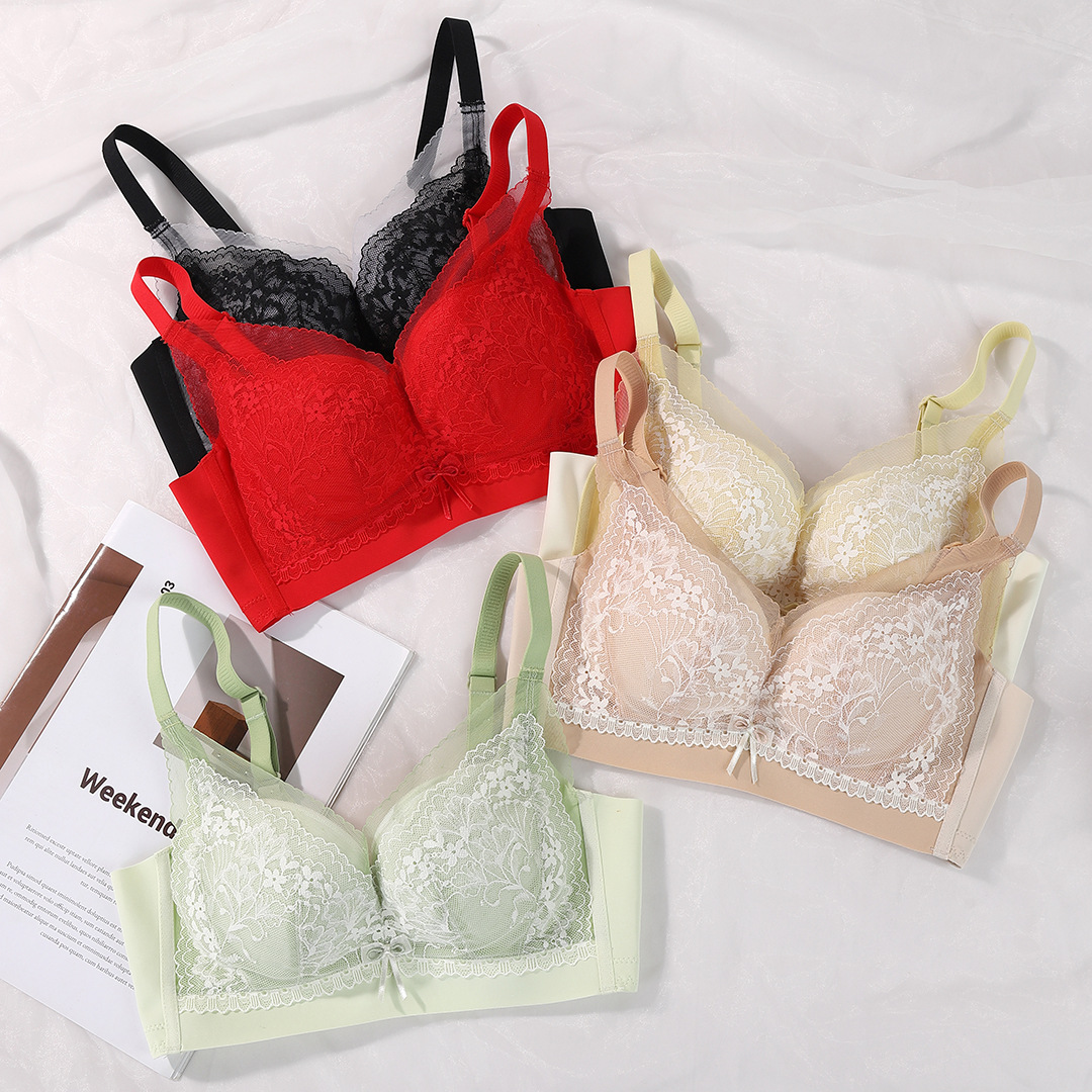 无钢圈内衣女轻羽胸罩小胸聚拢显大内衣性感上托蕾丝收副乳文胸