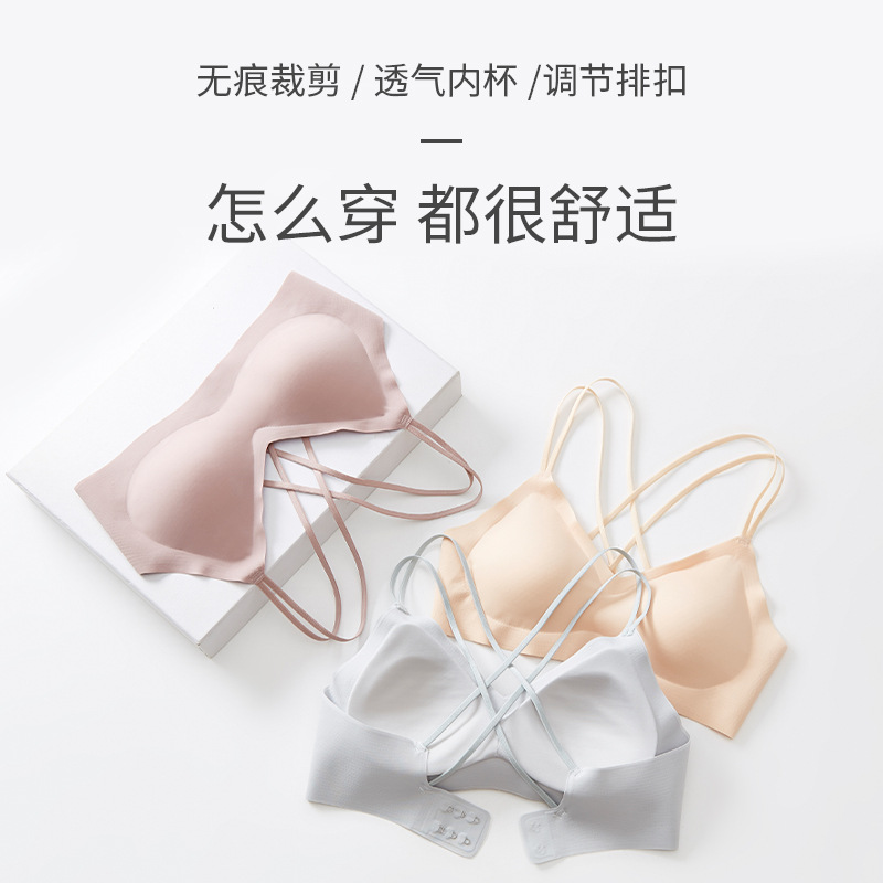 美背内衣女聚拢小胸夏季薄款无钢圈无痕小吊带神器交叉抹胸文胸罩
