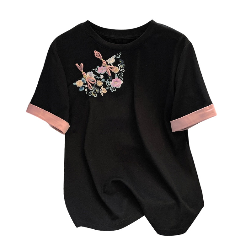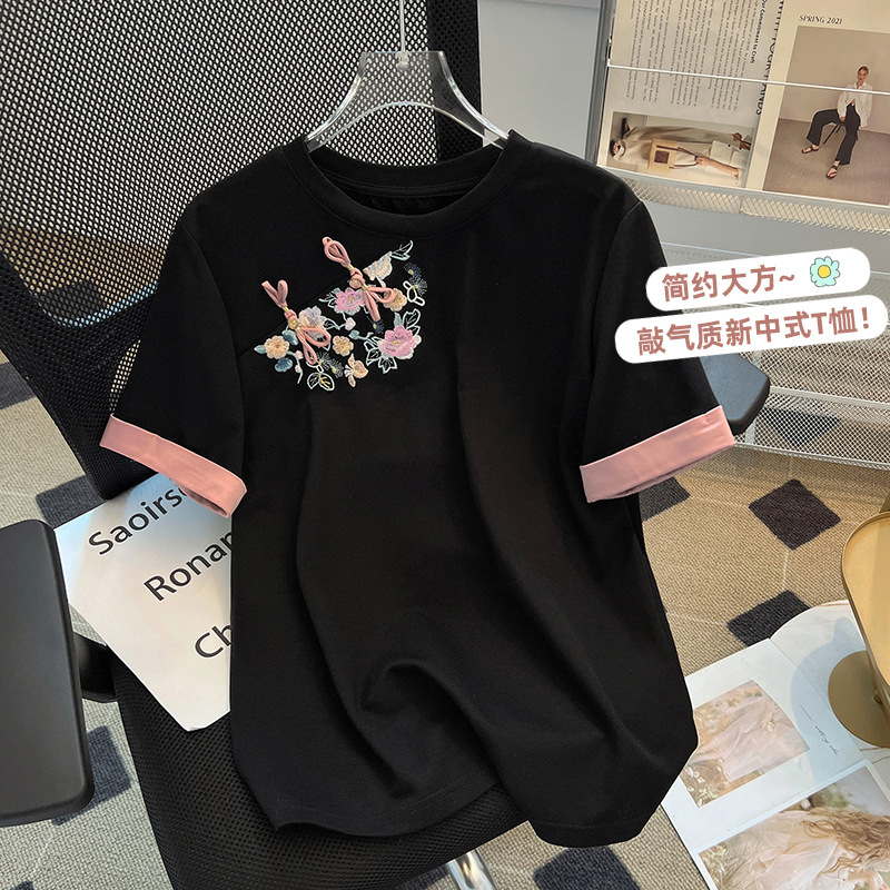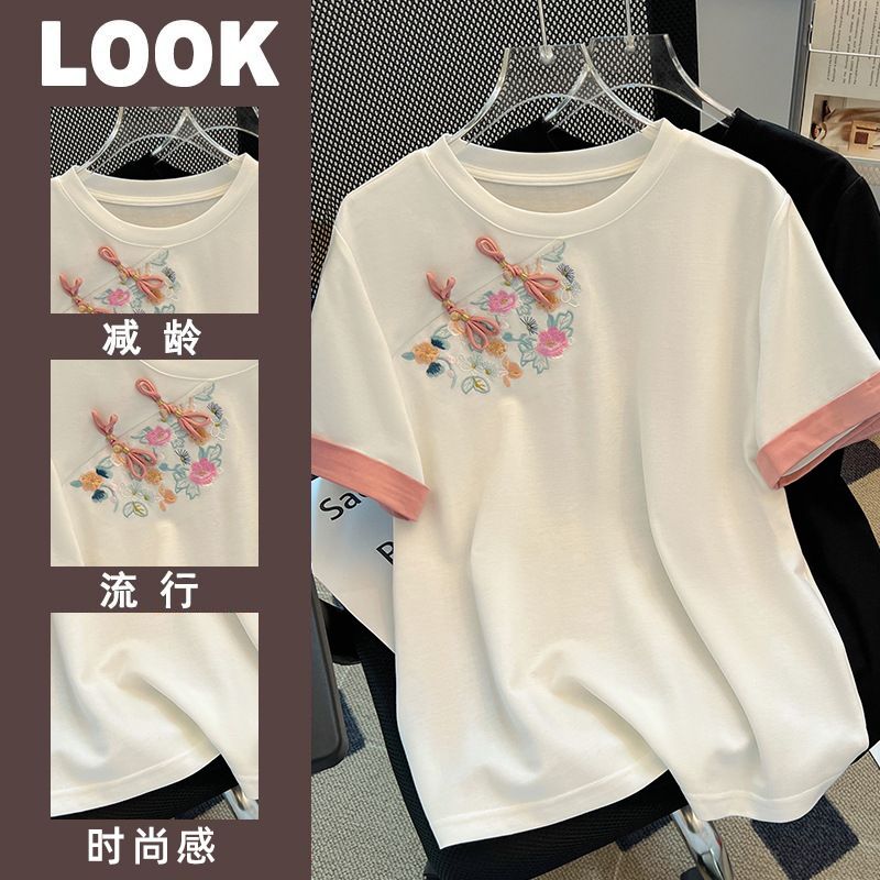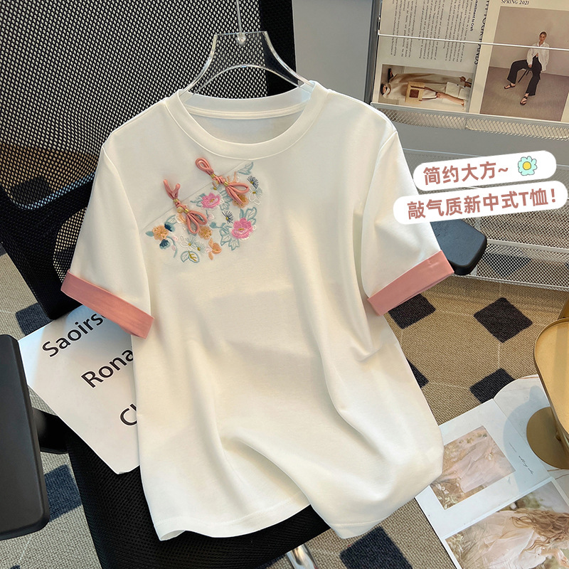 新中式国风刺绣白色短袖t恤女年新款夏季欧货高级感圆领上衣