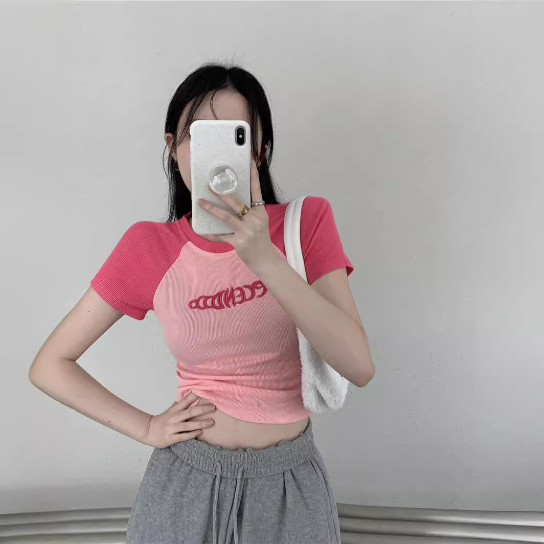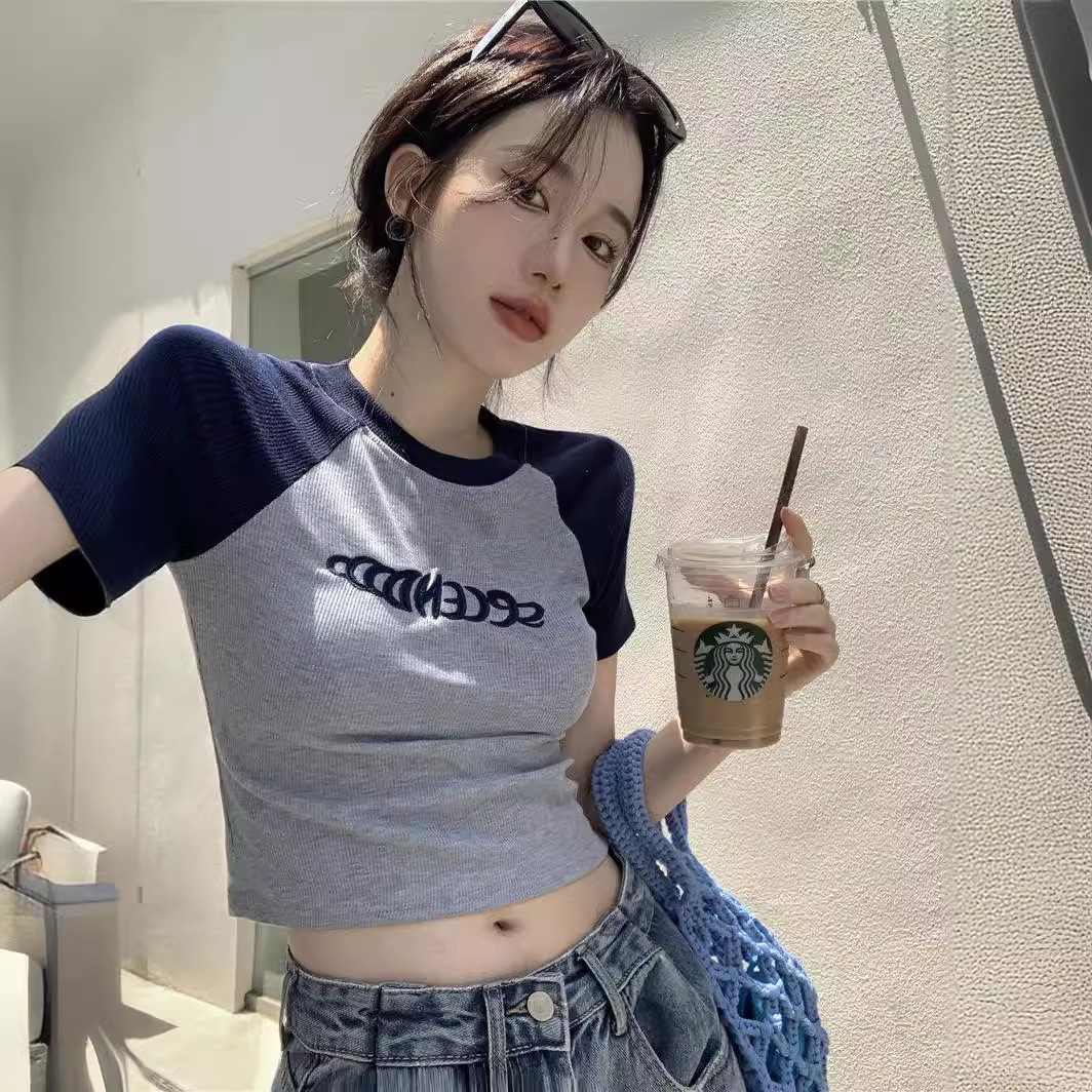 纯欲风短款学生上衣辣妹修身夏季新款短袖t恤女美式设计感ins
