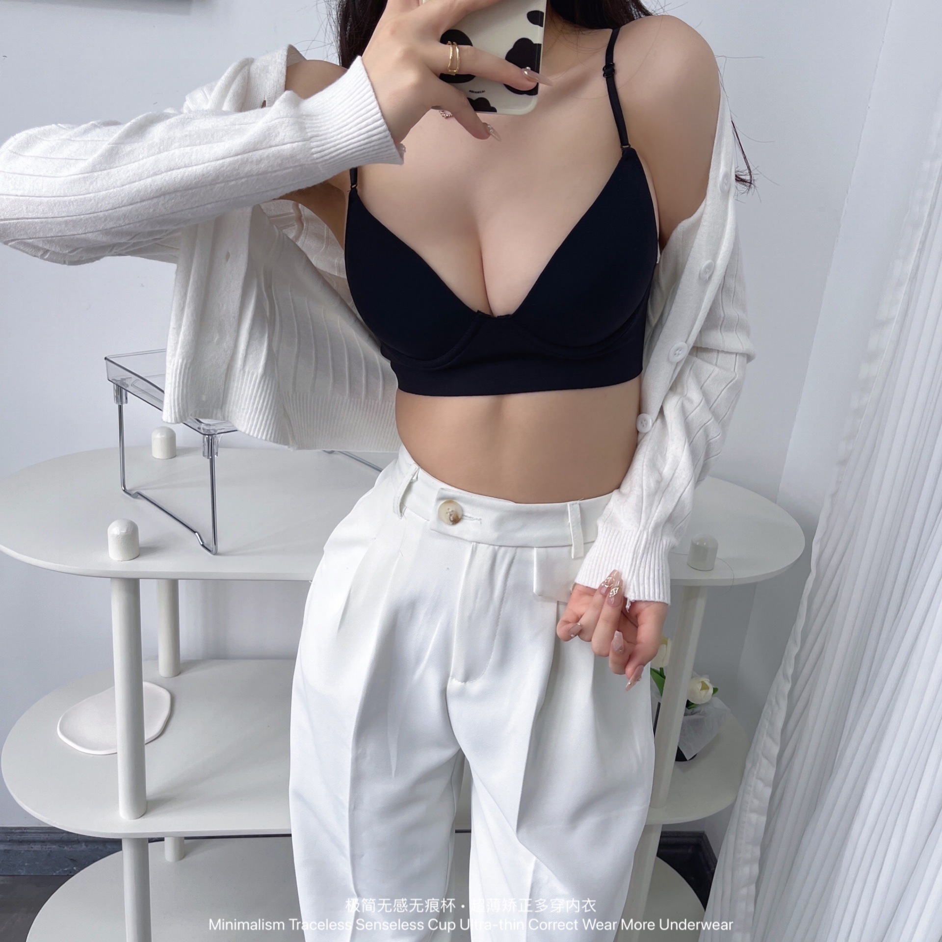 U型美背内衣女薄款聚拢防下垂无肩带文胸夏季挂脖多功能性感胸罩