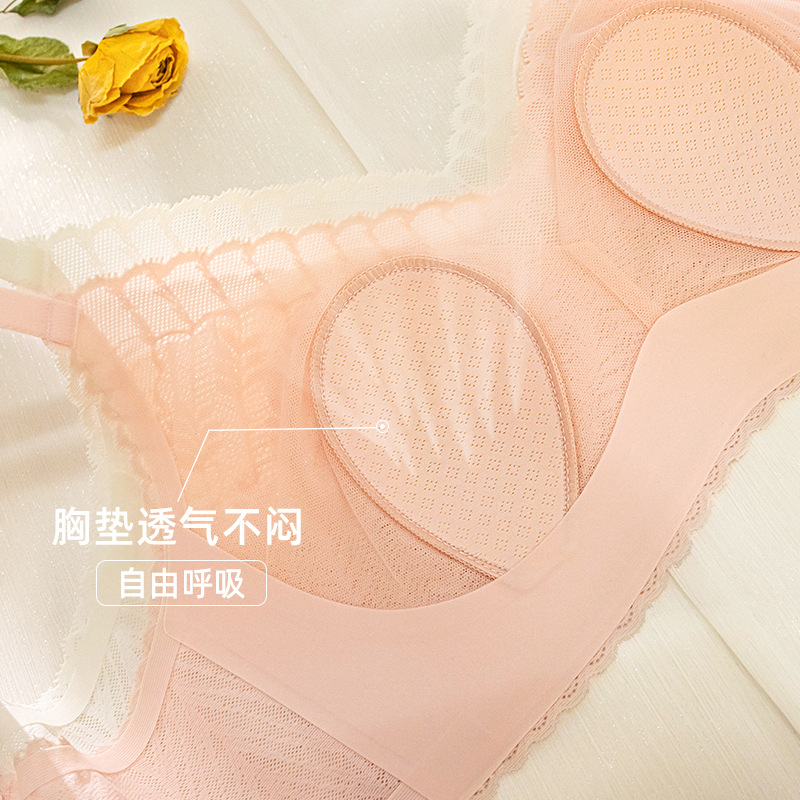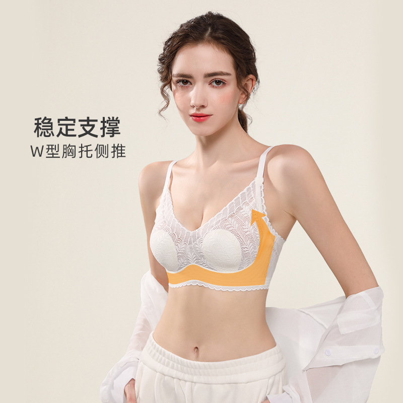 乳胶兔耳朵杯胸罩法式蕾丝内衣无痕薄款大胸显小收副乳无钢圈文胸