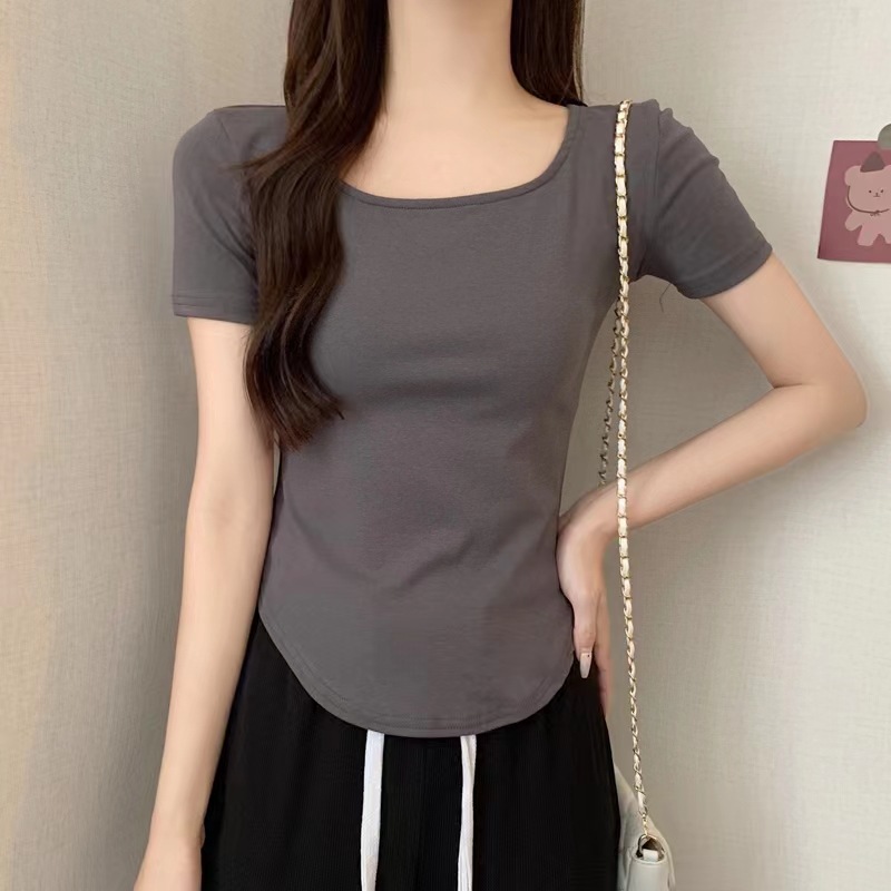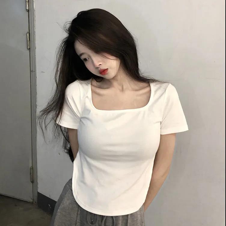 短袖T恤女夏新款韩版修身显瘦休闲打底小众少女纯欲辣妹上衣