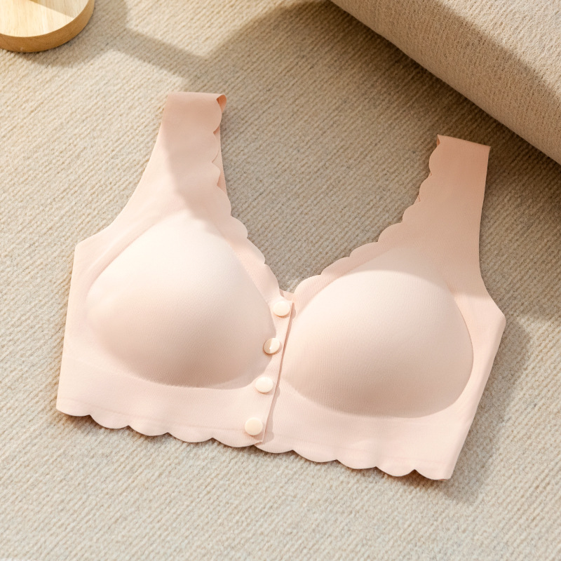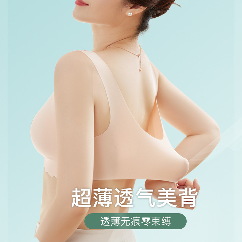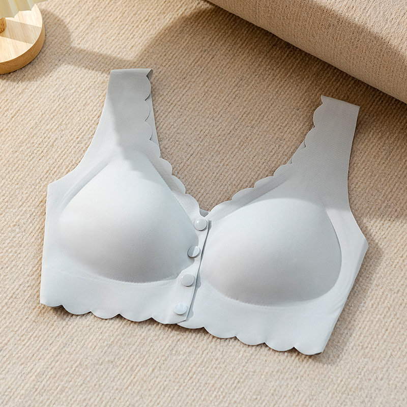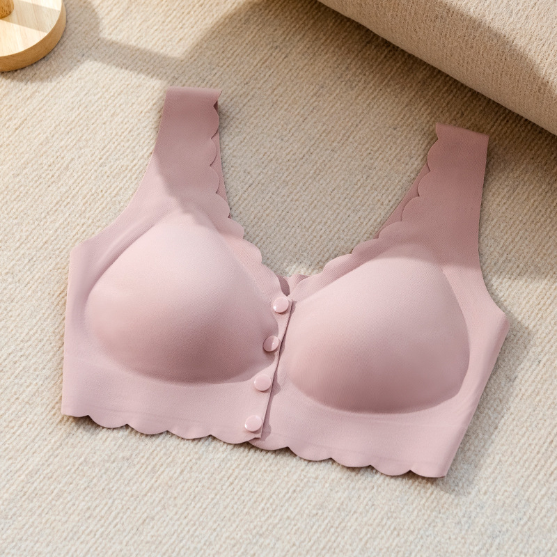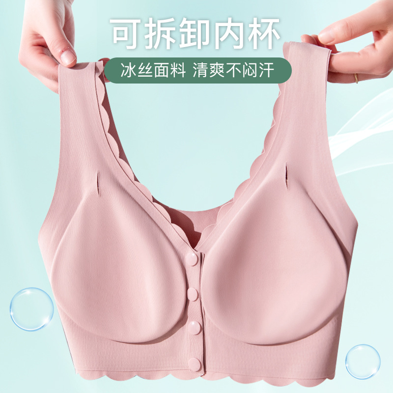 妈妈文胸内衣中老年人妇女薄款无痕前扣背心式冰丝胸罩无钢圈夏季