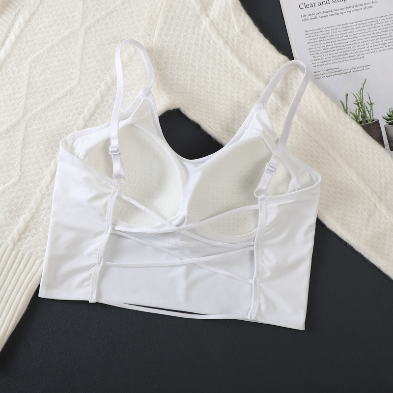 夏季冰丝镂空露背美背吊带固定杯运动裹胸抹胸内衣调节肩带防走光
