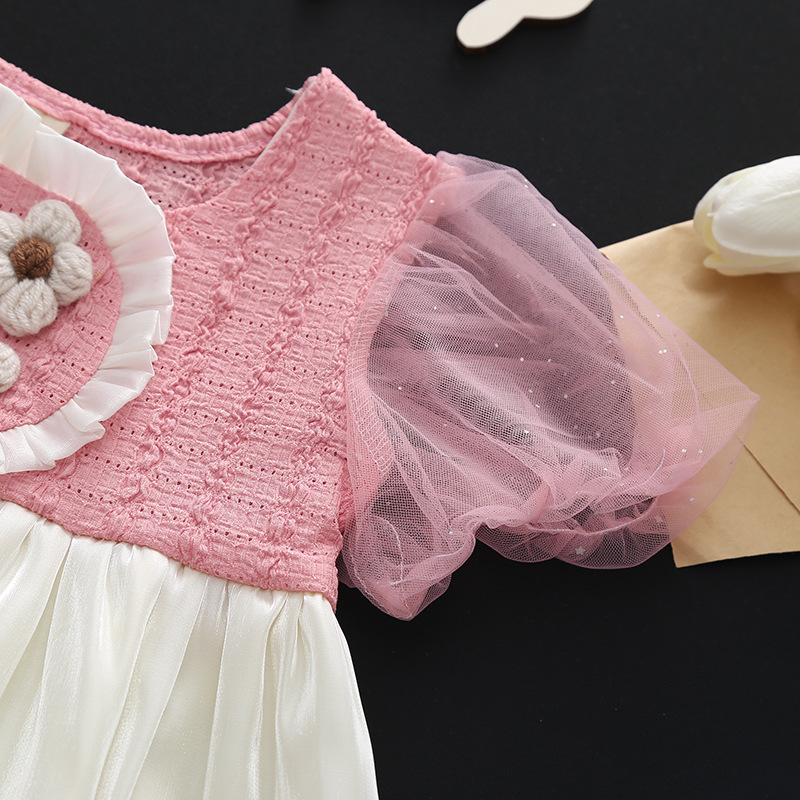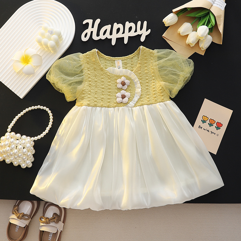 女童连衣裙夏季新款网纱短袖流光纱裙洋气中小童两色圆领公主裙