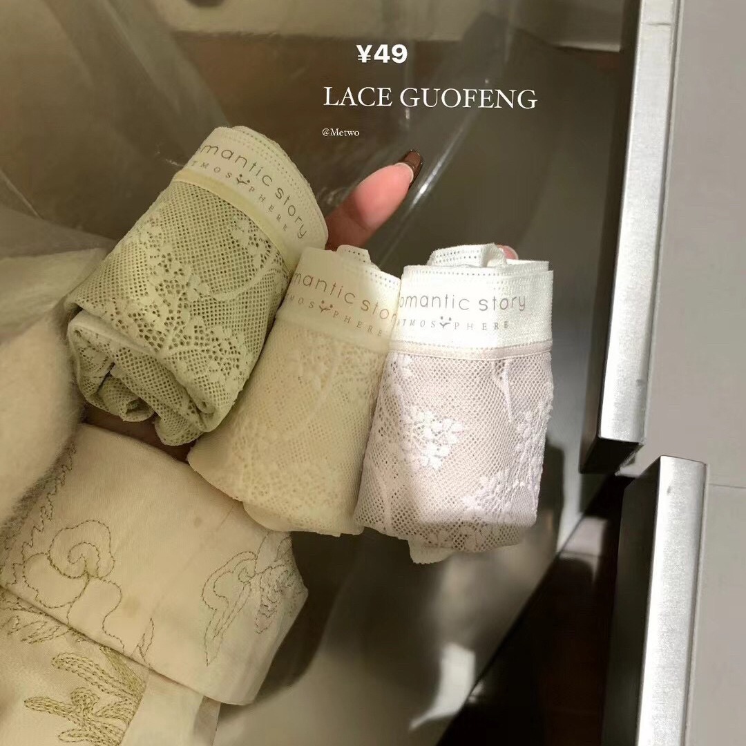 中式纯欲蕾丝女士三角裤中腰高弹字母腰头网纱透明纯棉档性感内裤