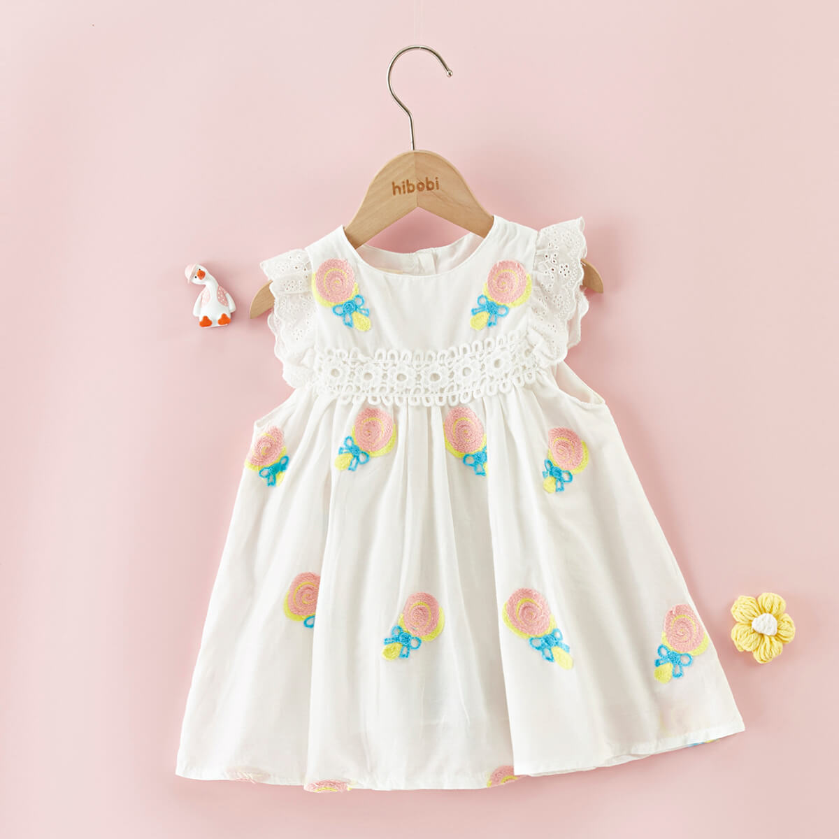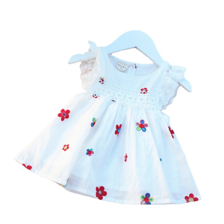 夏季新款6-9-12月婴幼儿童裙1岁女宝宝绣花小飞袖连衣裙2-3岁半裙