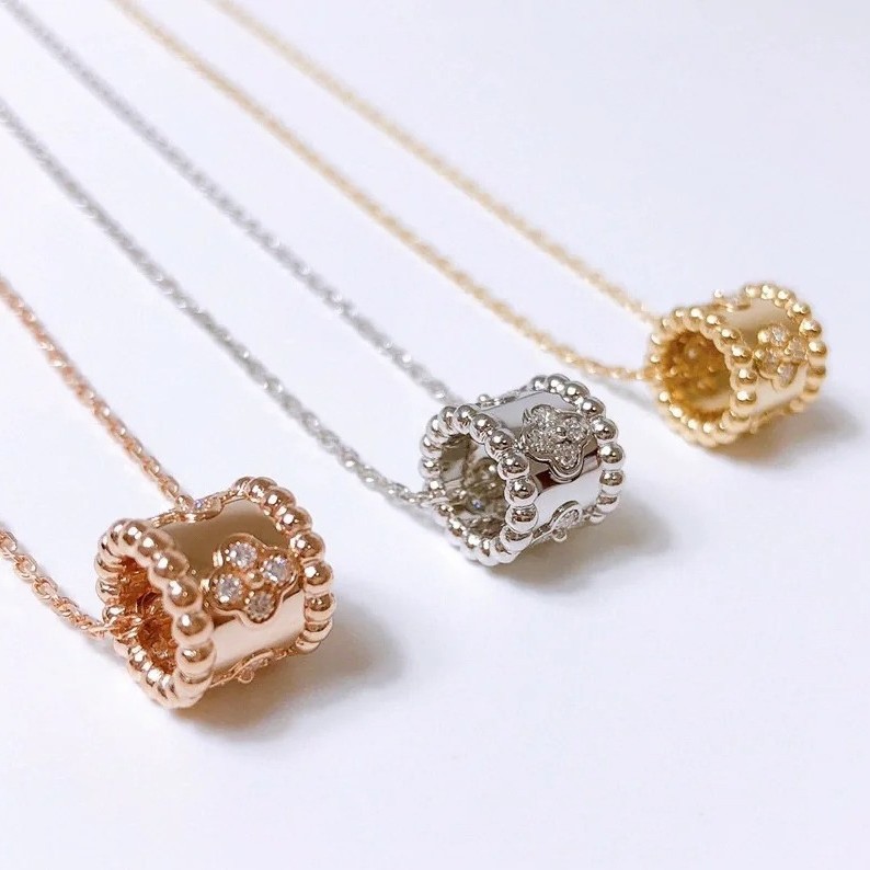 高版万花筒项链女18K玫瑰金幸运四叶草V家气质镶钻吊坠锁骨链小众