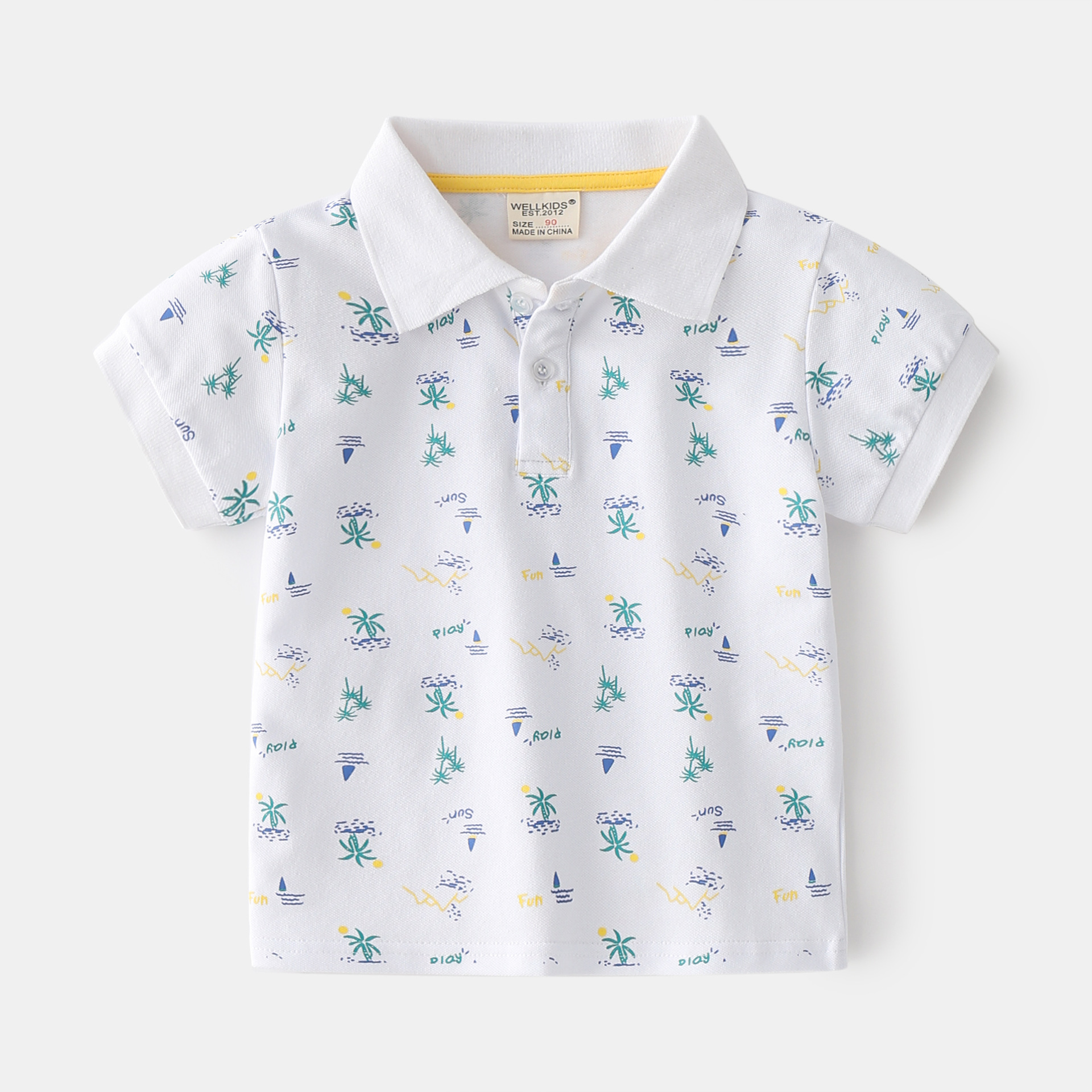 款夏季中小男童棉质短袖POLO衫 卡通图案柔软款吸湿排汗短袖