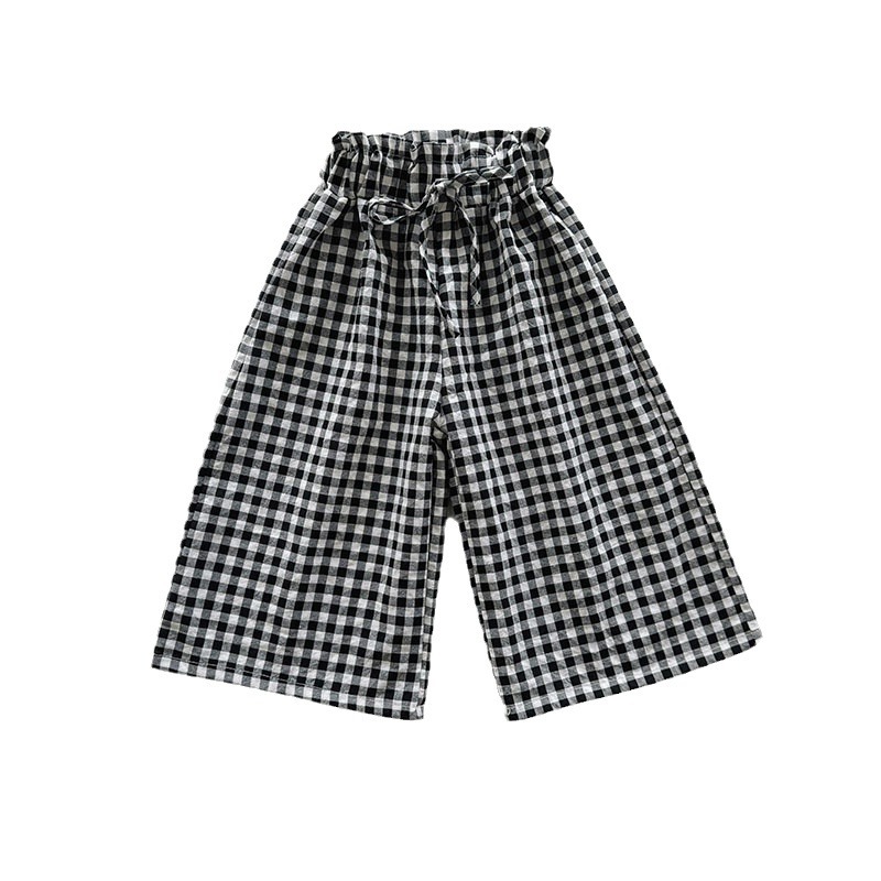 女童直筒格子儿童中小童阔腿九分裤女孩裤夏季薄款花苞腰夏装裙裤