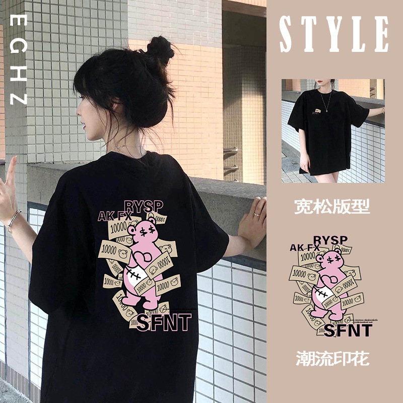 美式复古短袖潮牌t恤女纯棉重磅ins夏装新款宽松正肩今年爆款上衣