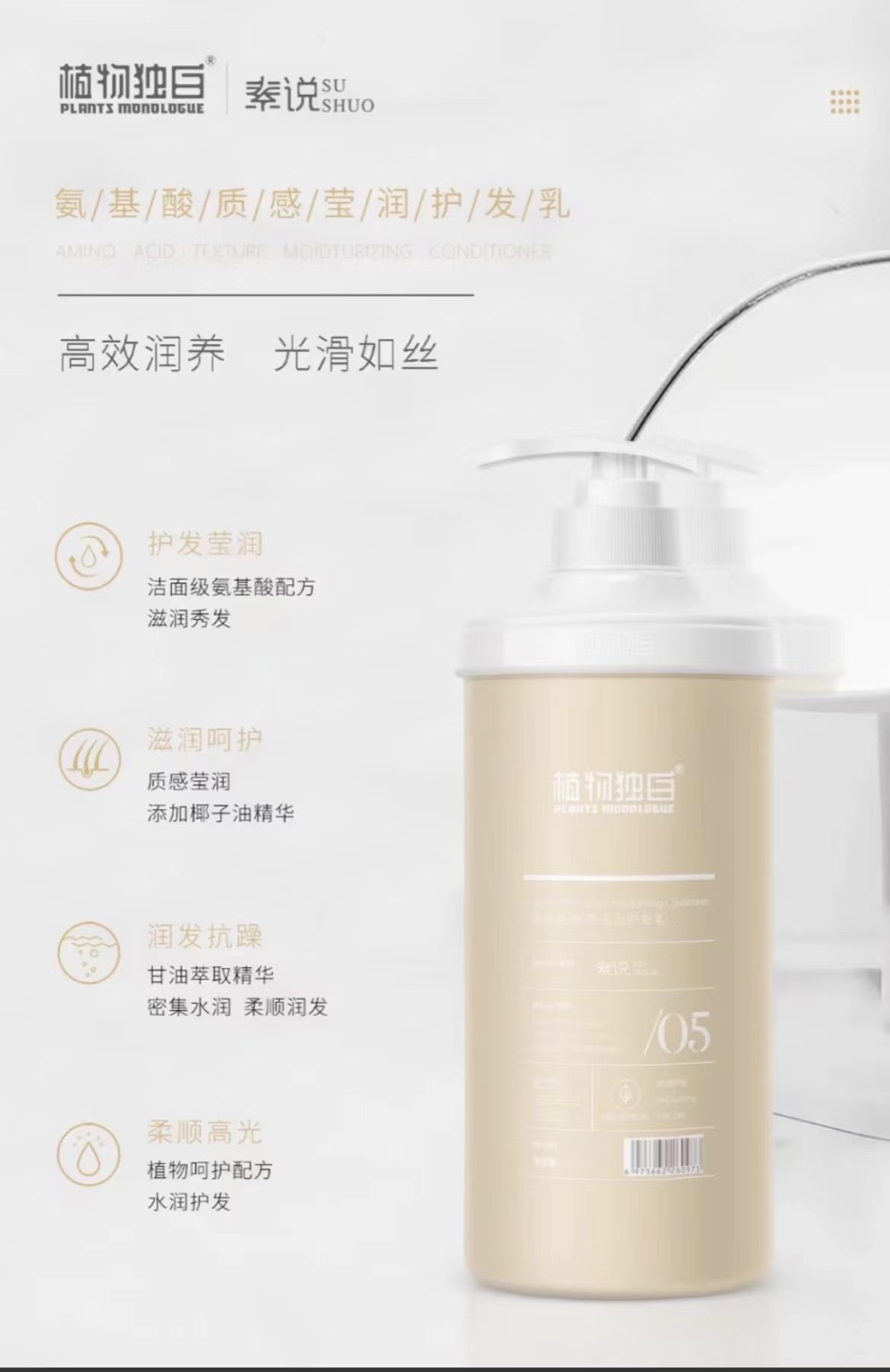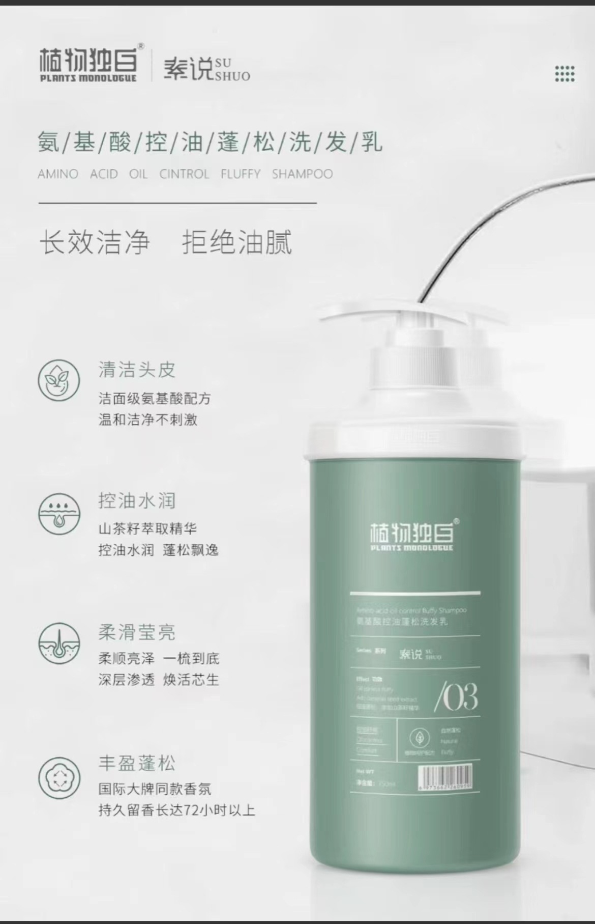 植物独白 素说洗发水护发素去屑控油蓬松止痒干枯毛躁发膜分叉顺
