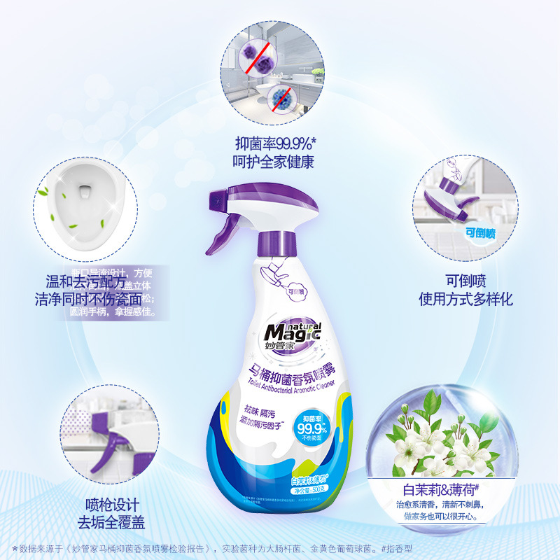 妙管家马桶抑菌香氛喷雾500g祛味隔污洁厕抑菌率99.9%不伤瓷面