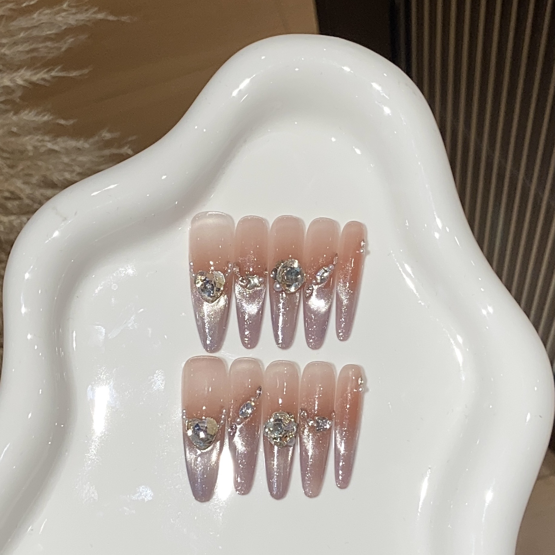 一只顾美甲 手工纯欲冰透渐变猫眼珍珠斜边小碎钻京洛佳人穿戴甲