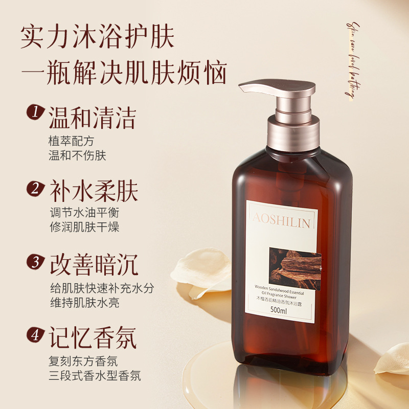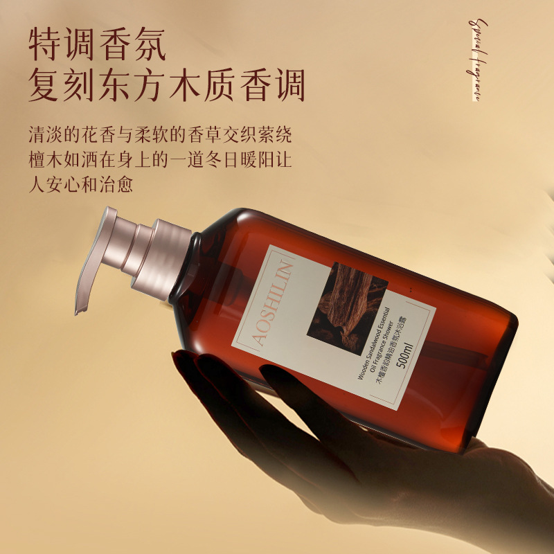 奥诗琳木檀香韵精油香氛沐浴露500ml沐浴露酒店民宿沐浴乳抖音