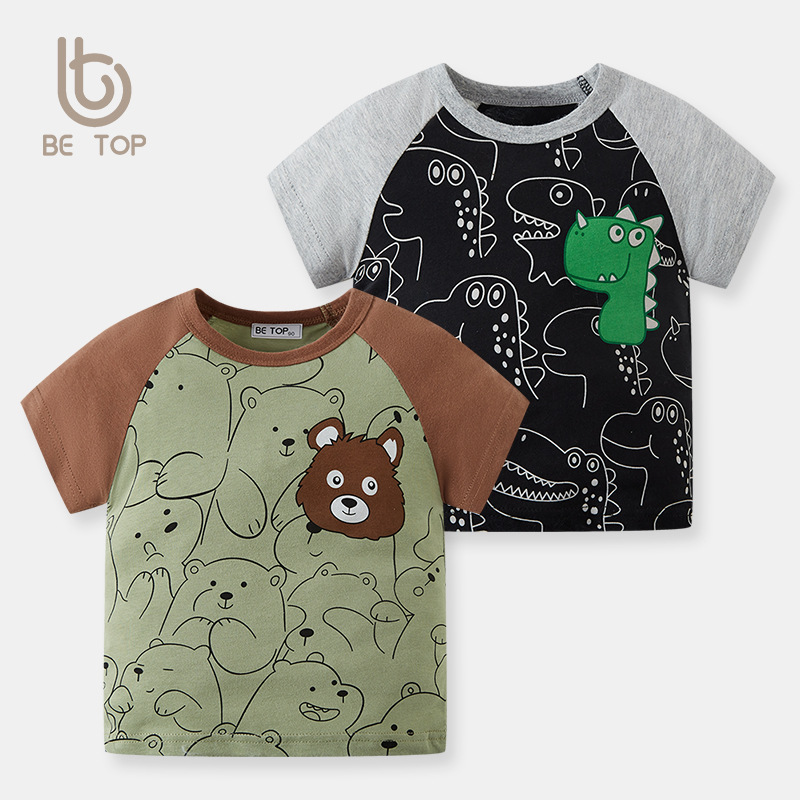 be top卡通童装满印小熊儿童短袖T恤圆领宝宝插袖上衣潮