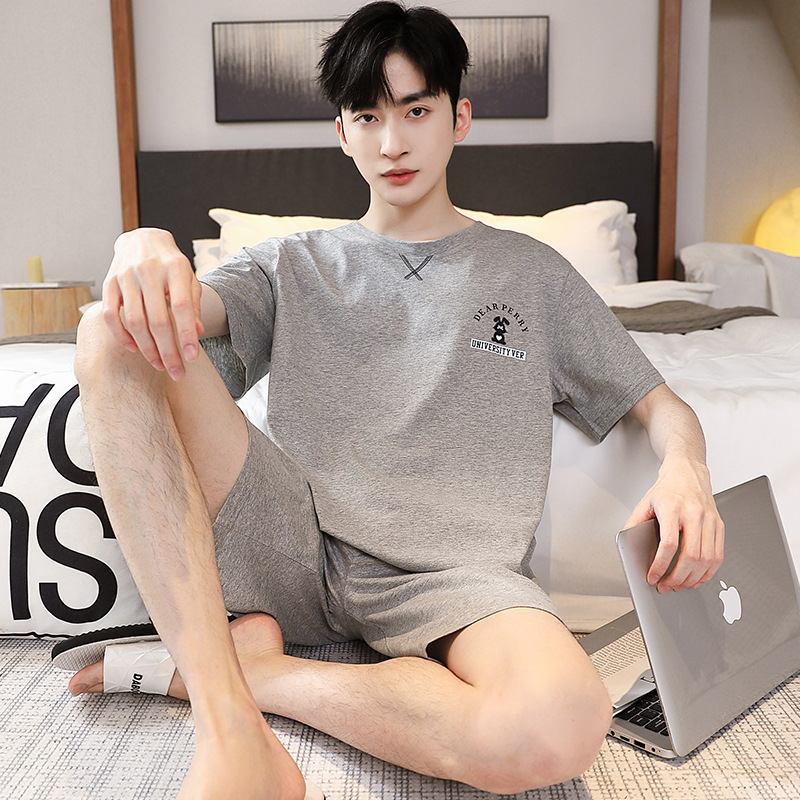 新款男士纯棉睡衣短袖短裤全棉家居服可外穿打底春夏款