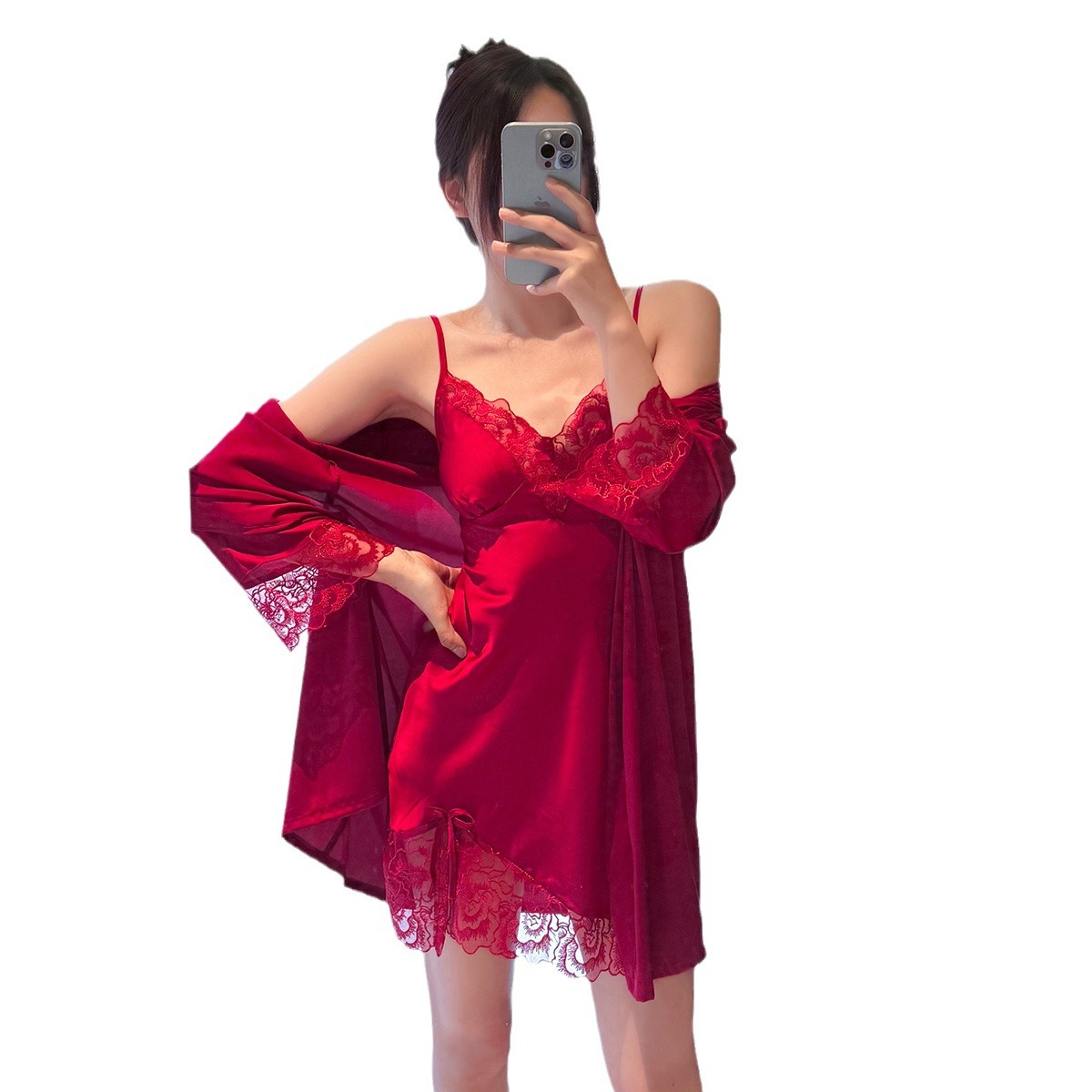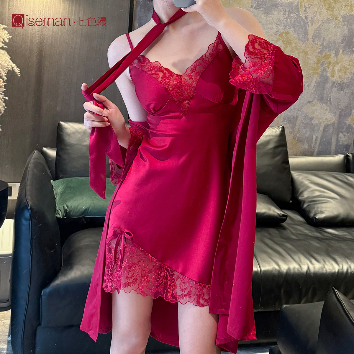 性感吊带冰丝睡裙两件套春夏纯欲风带胸垫睡衣套装私房女士家居服
