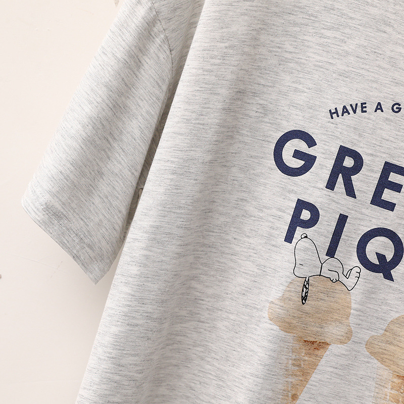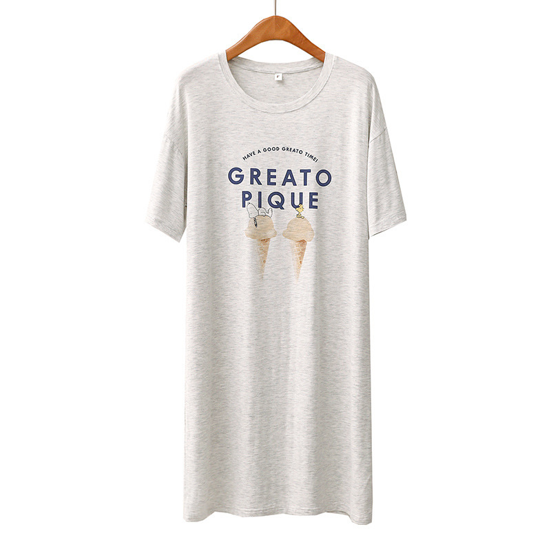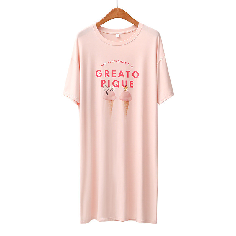 莫代尔睡裙女士夏季薄款日系卡通冰激凌字母圆领中长款甜美连衣裙