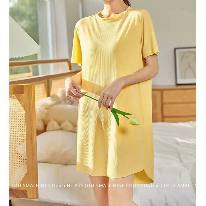 冰丝凉凉裙子春夏新款时尚显瘦居家睡裙气质连衣裙宽松中长裙