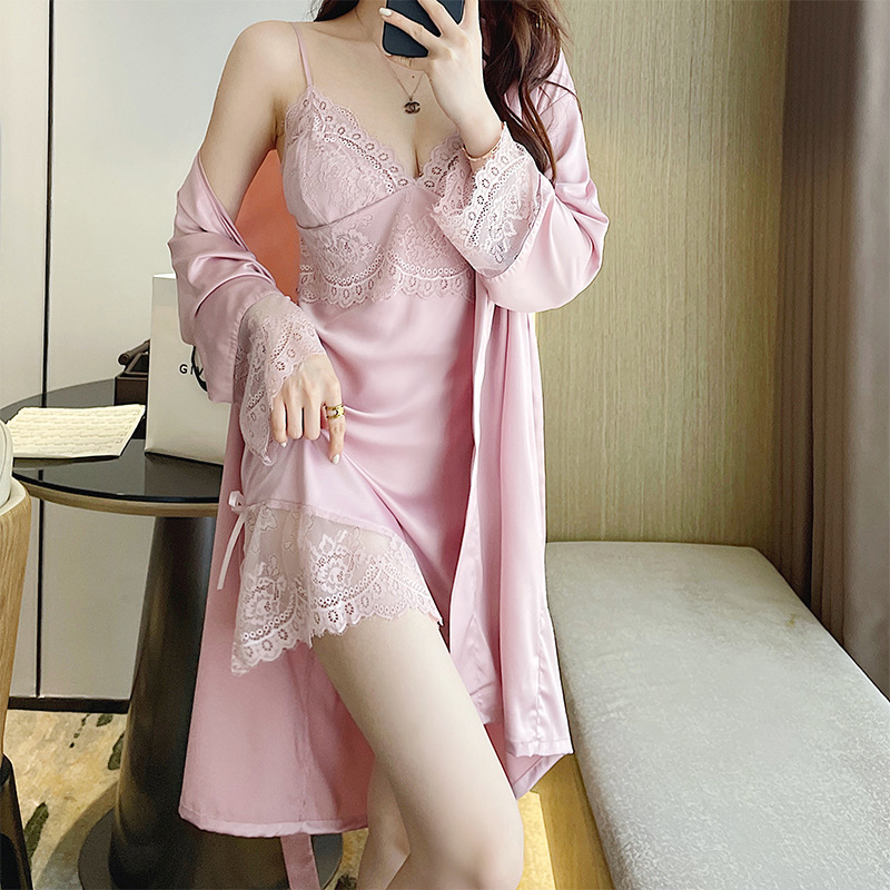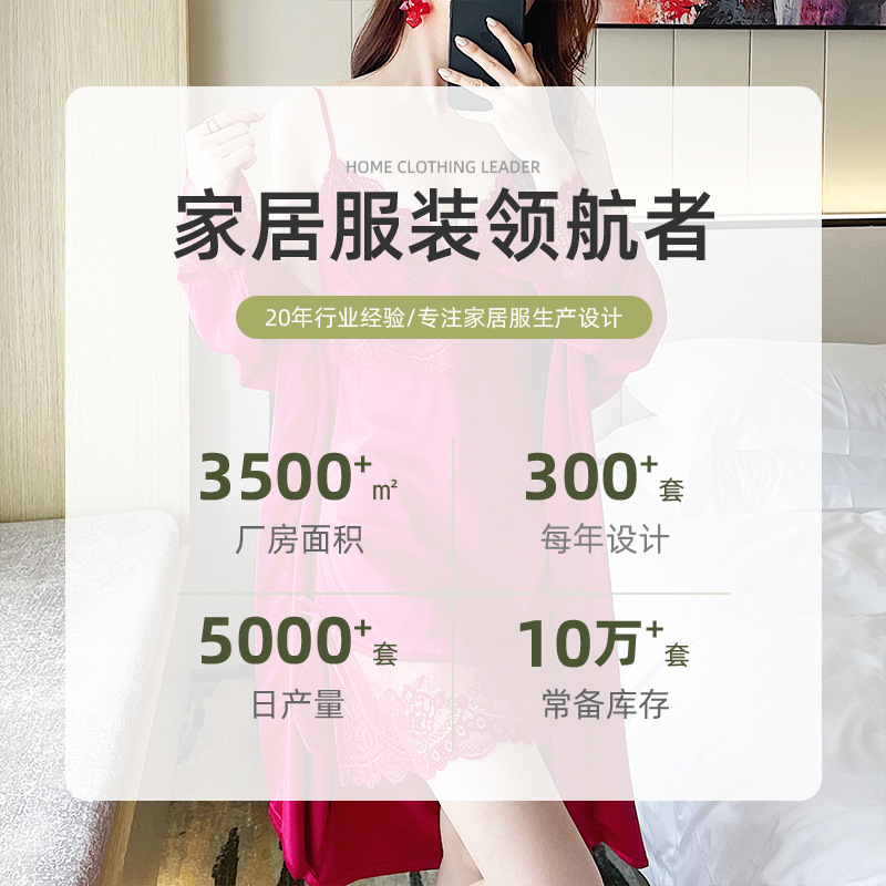 直播性感吊带睡衣女士高开叉带胸垫家居服批发冰丝睡裙睡袍两件套