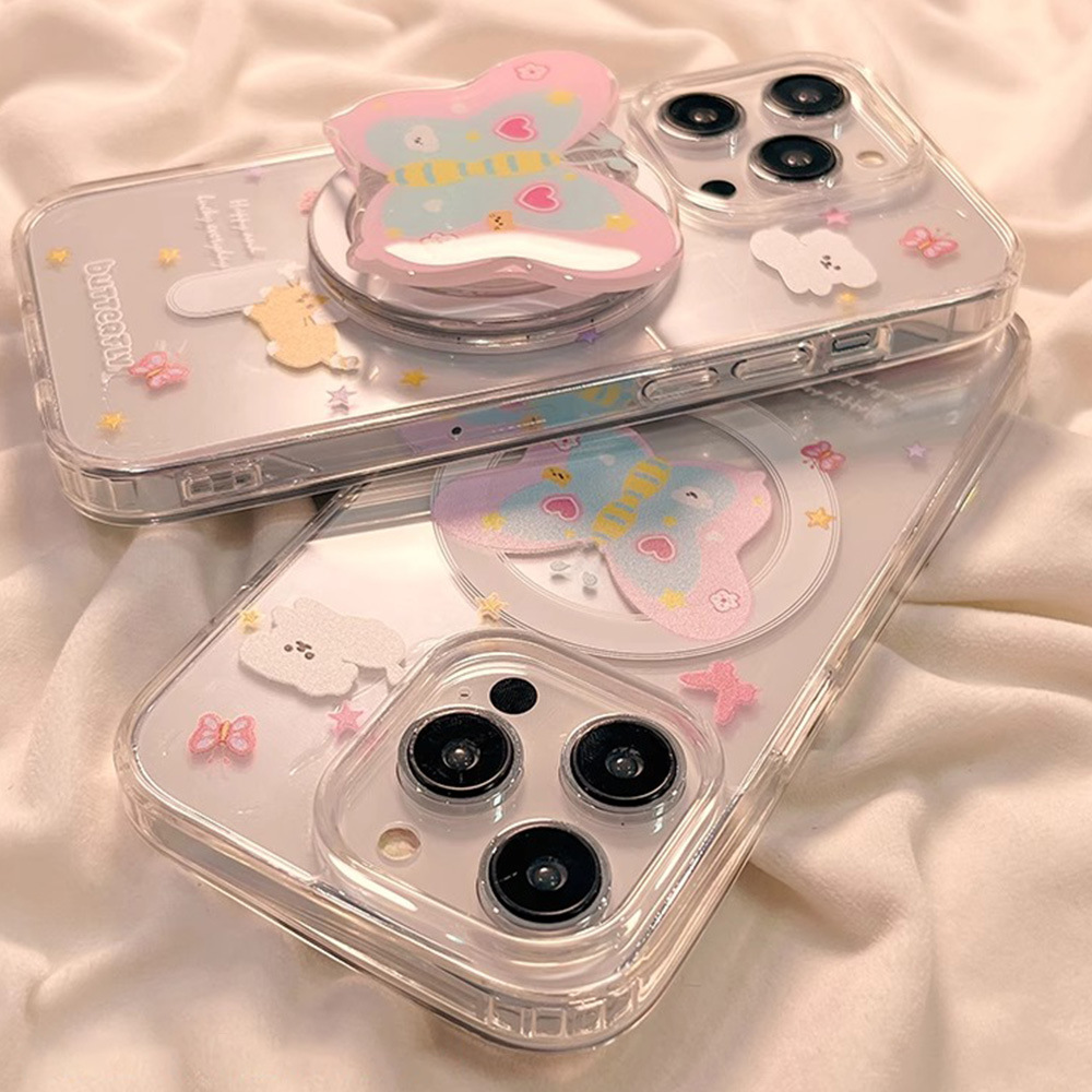 可爱彩色蝴蝶磁吸支架苹果15手机壳全包防震iPhone14防摔13卡通12