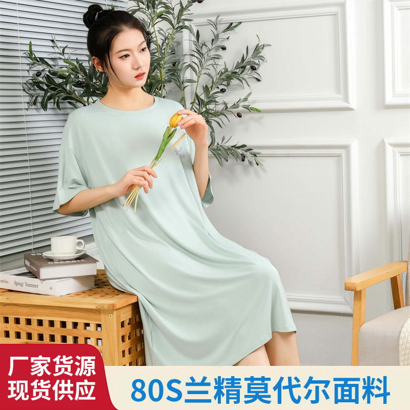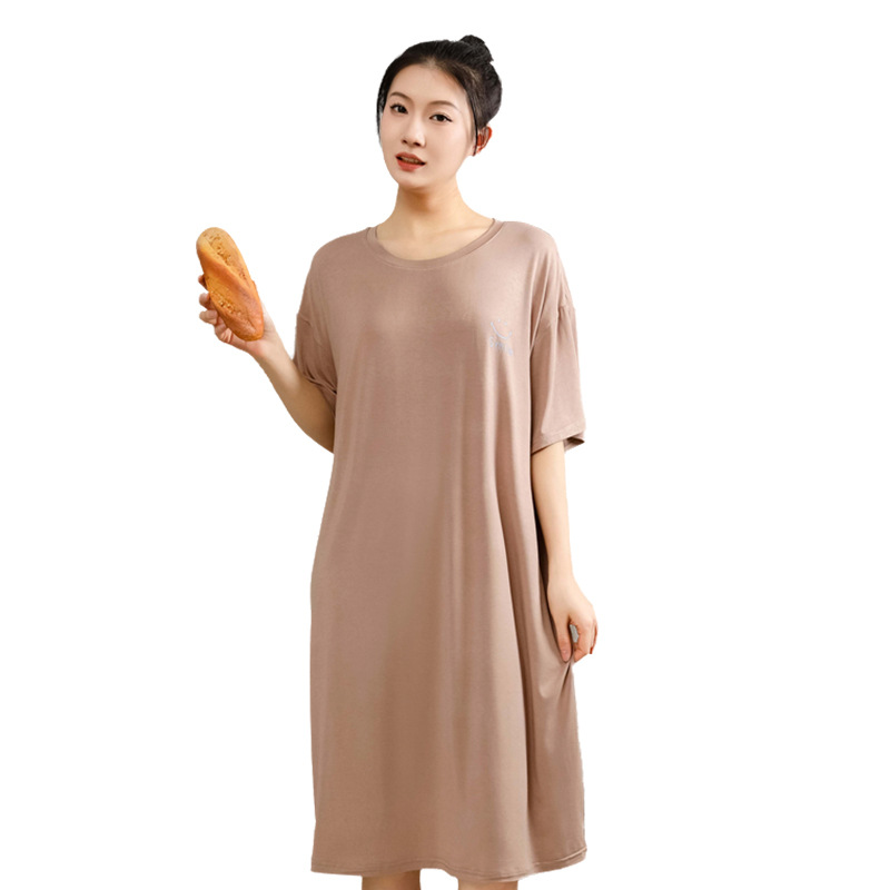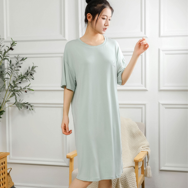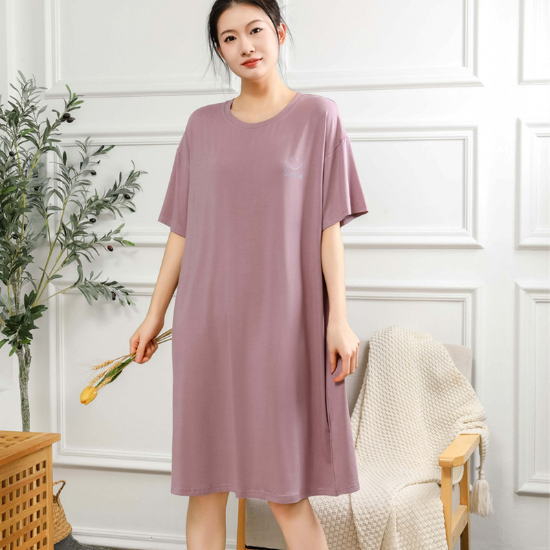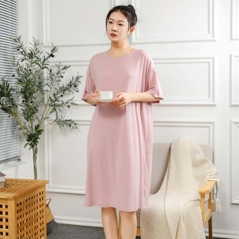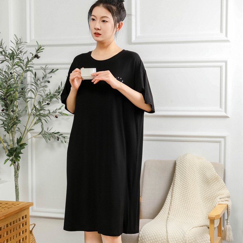 四季女士居家服笑脸睡裙长裙柔软舒适睡衣 时尚纯色睡裙